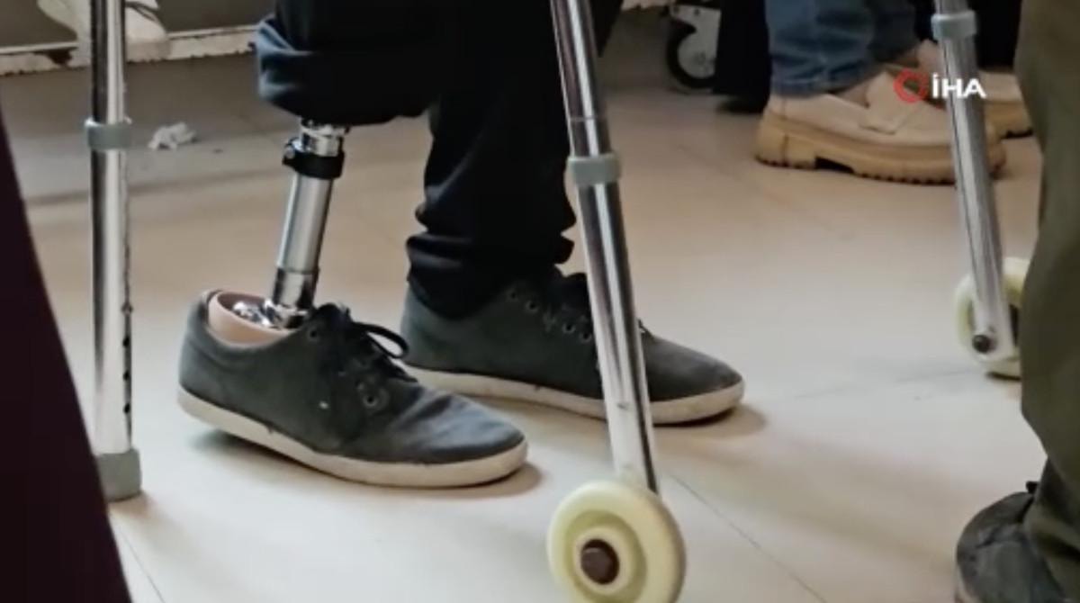 AMPUTE BACAĞIYLA HASTALARA BAKIYOR