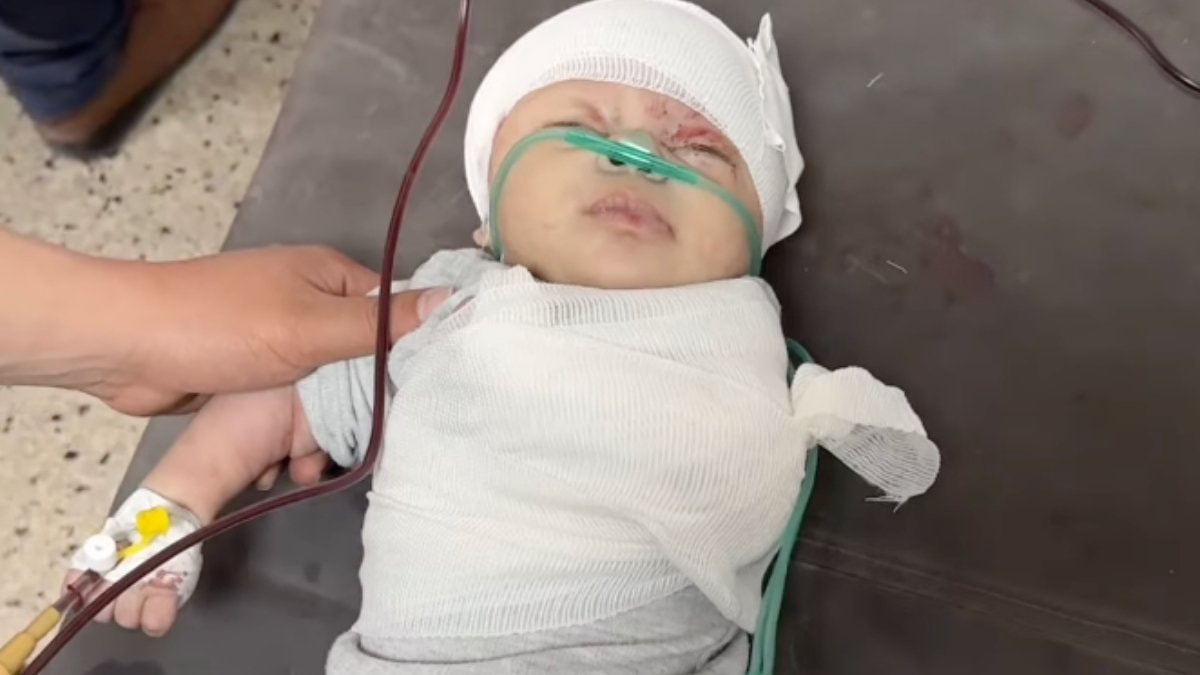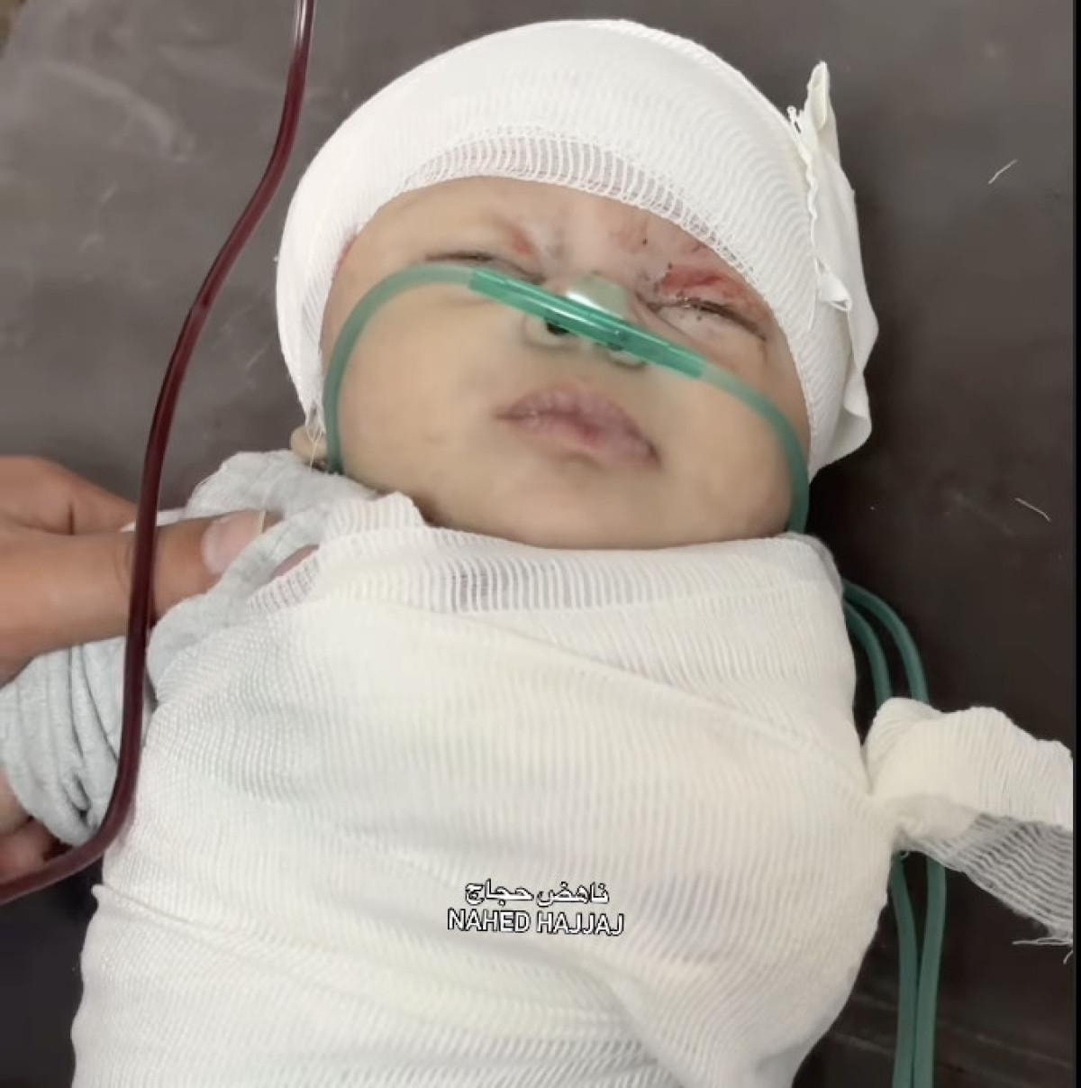 Saldırının etkisiyle kolunu kaybeden küçücük masum bebeğin sargılar içindeki hali sosyal medyanın gündemine oturdu.