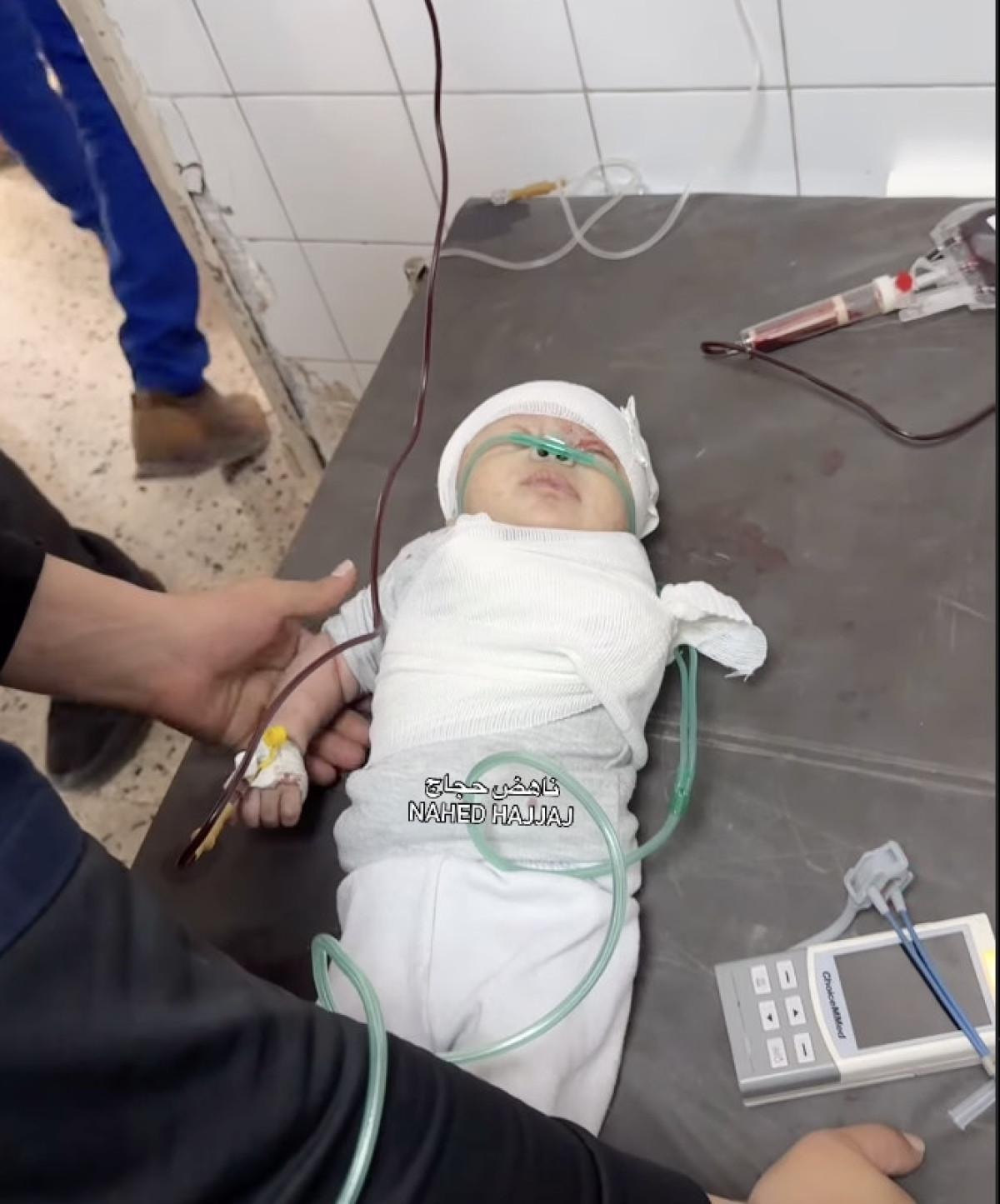 Shuja Mahallesi'ne düzenlenen saldırılarda kolunu kaybeden küçük bebek Baptist Hastanesi'nde tedavi altına alınırken söz konusu görüntüler yürekleri parçaladı.