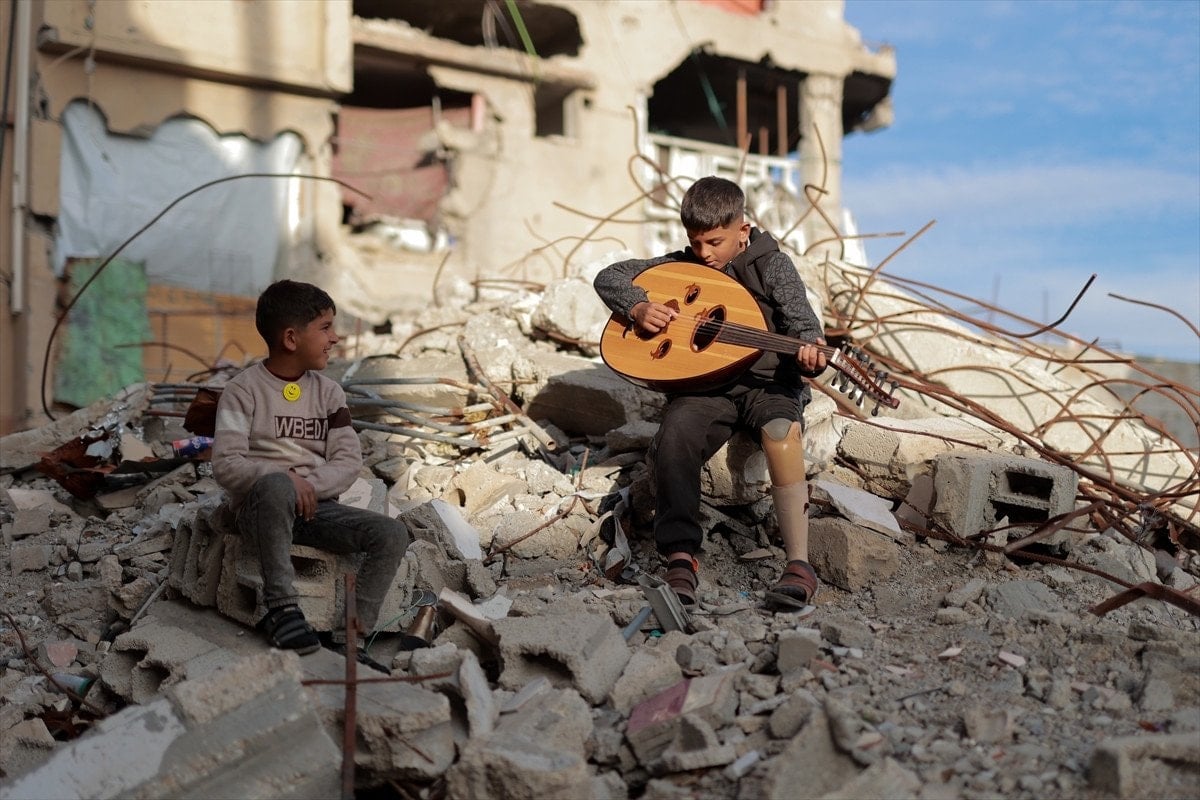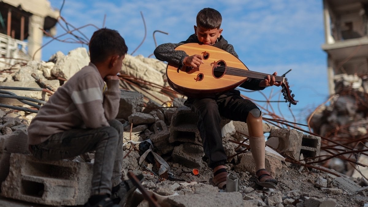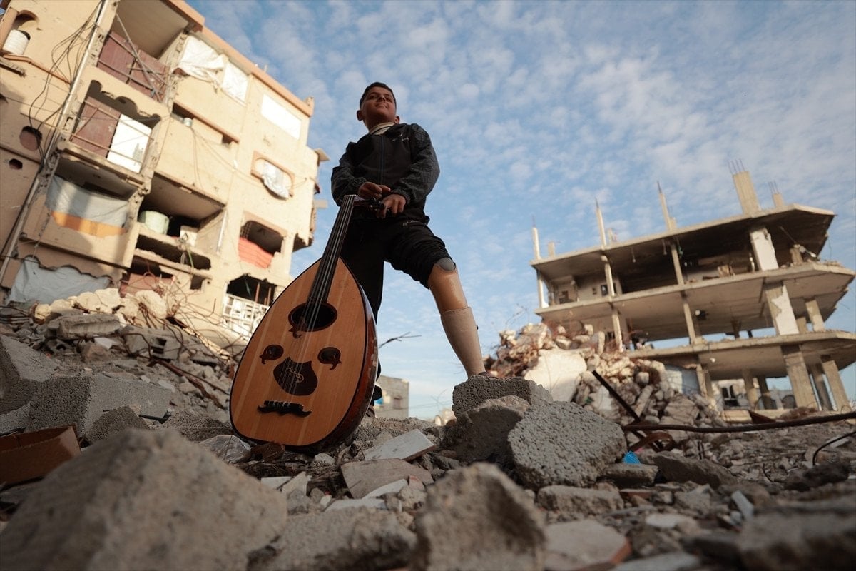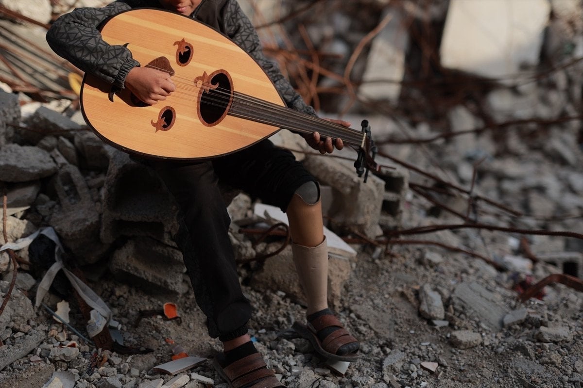 İsrail ordusunun Gazze’de el-Razi Okulu’nu hedef alan saldırısında ağır yaralanarak sol bacağını kaybeden 12 yaşındaki Filistinli çocuk Abdurrahman En-Neşaş, müzikle hayata tutunuyor.