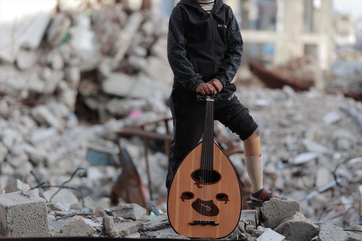- İsrail saldırısında bacağını kaybeden 12 yaşındaki Abdurrahman En-Neşaş, müzikle hayata tutunuyor.