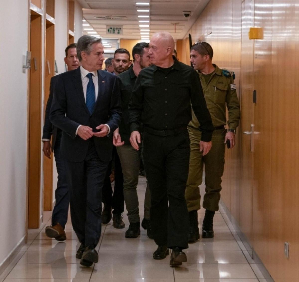 İsrail Savunma Bakanlığından yapılan açıklamaya göre İsrail Savunma Bakanı Yoav Gallant, ülkesini ziyaret eden ABD Dışişleri Bakanı Antony Blinken ile ikili ve İsrailli askeri yetkililerin de katıldığı heyetler arası görüşme gerçekleştirdi.