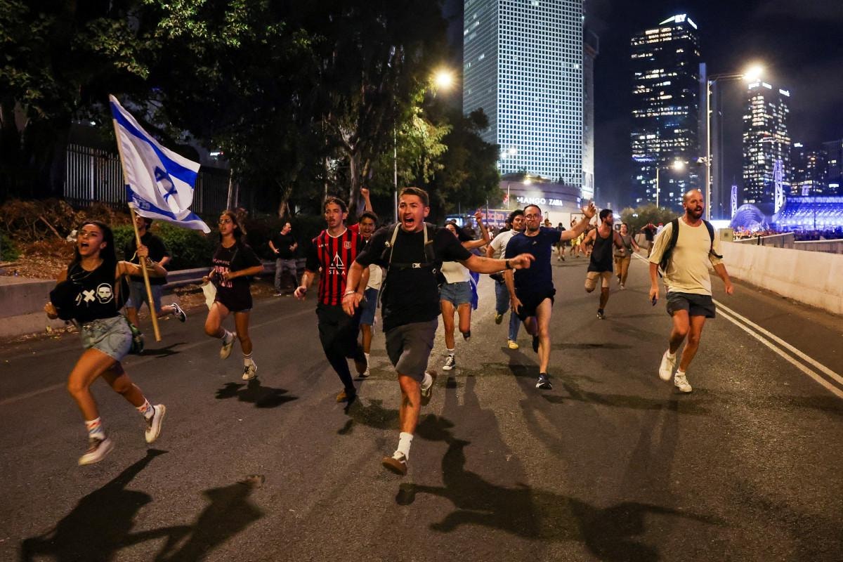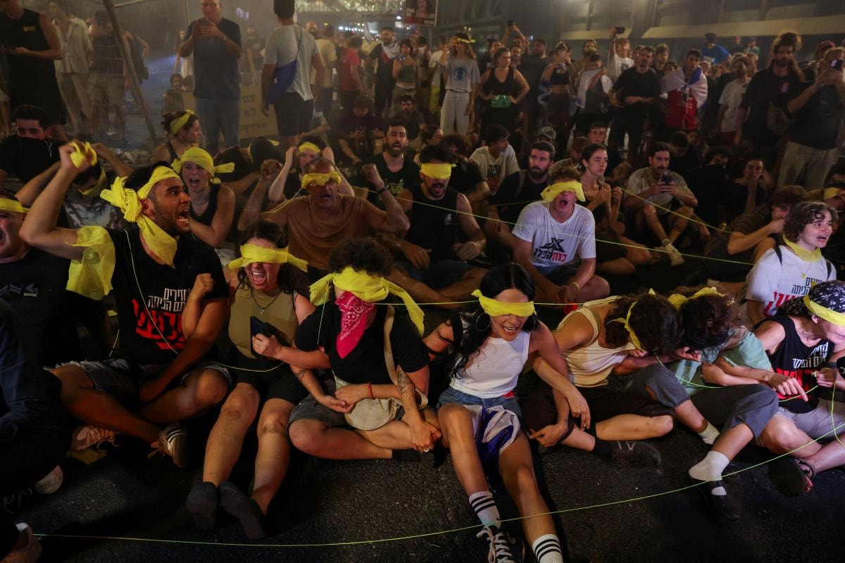 Bunun yanı sıra Tel Aviv'de göstericiler, kentin ana otoyollarından birini tek yönlü trafiğe kapatarak yolda lastik yaktı.