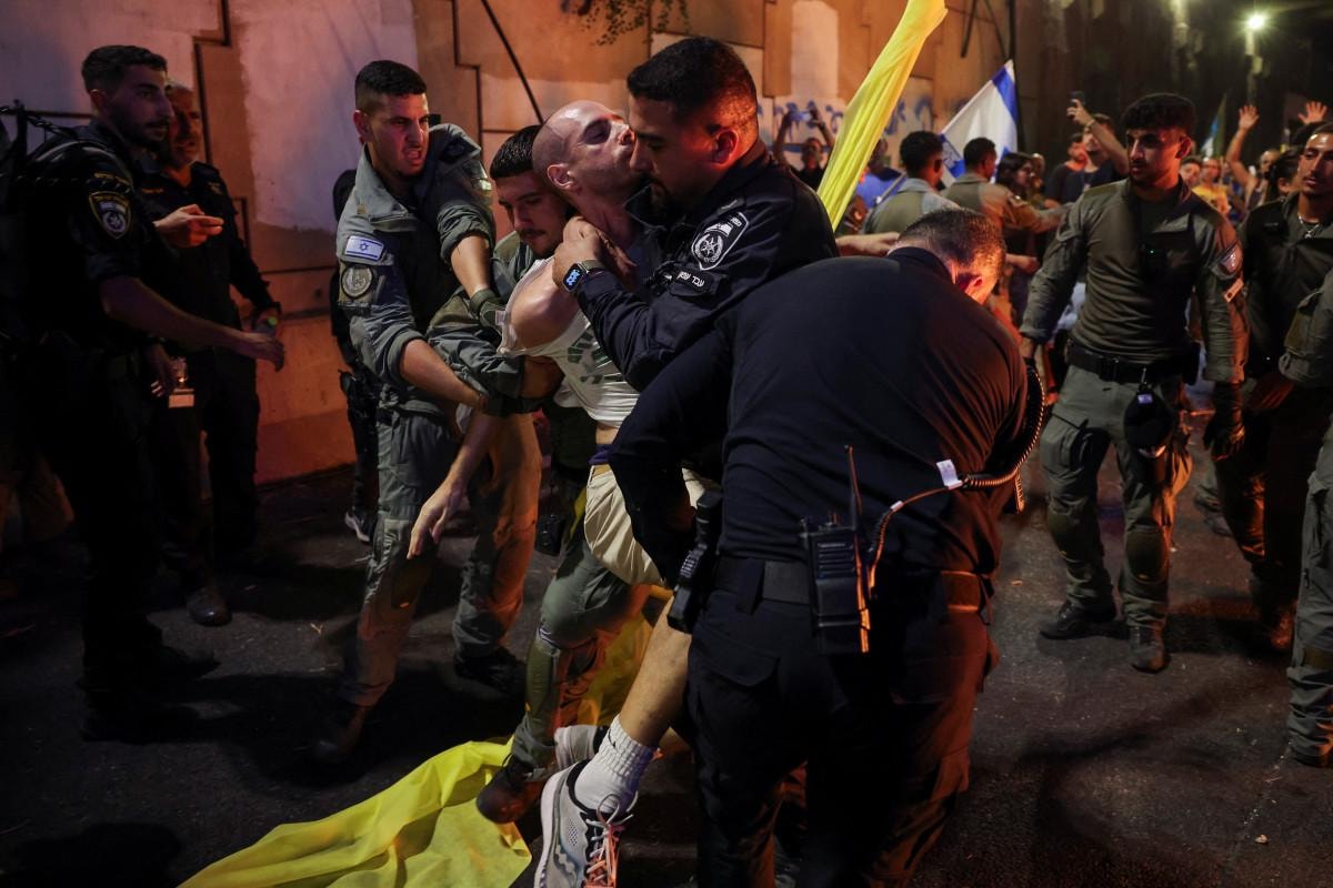 Ellerinde İsrail bayrakları bulunan protestocular, Başbakan Netanyahu ve hükümetindeki siyasetçiler aleyhinde pankart, afiş ve dövizler de taşıdı.