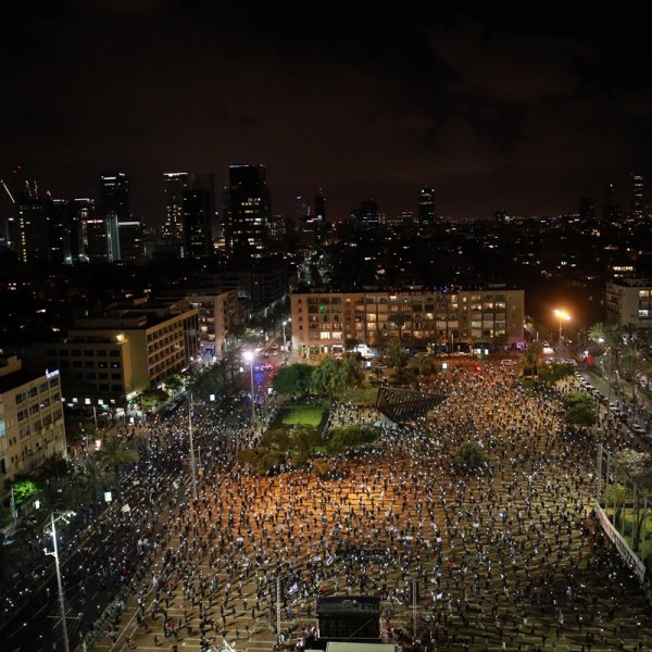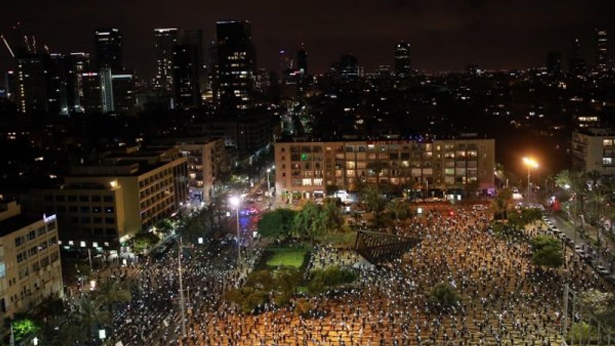 İsrail'in başkenti Tel Aviv'deki Rabin Meydanı'nda toplanan yüzlerce kişi, salgına rağmen Netanyahu karşıtı gösteri düzenledi.