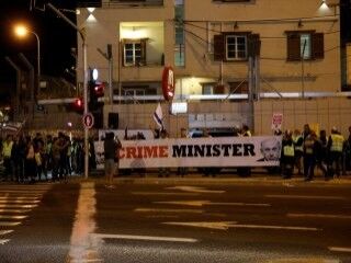 Protestocular, İsrail Başbakanı Binyamin Netanyahu'nun resminin yer aldığı "Suç Başbakanı" yazılı pankartlar açarken, Netanyahu'yu istifaya çağırdı.