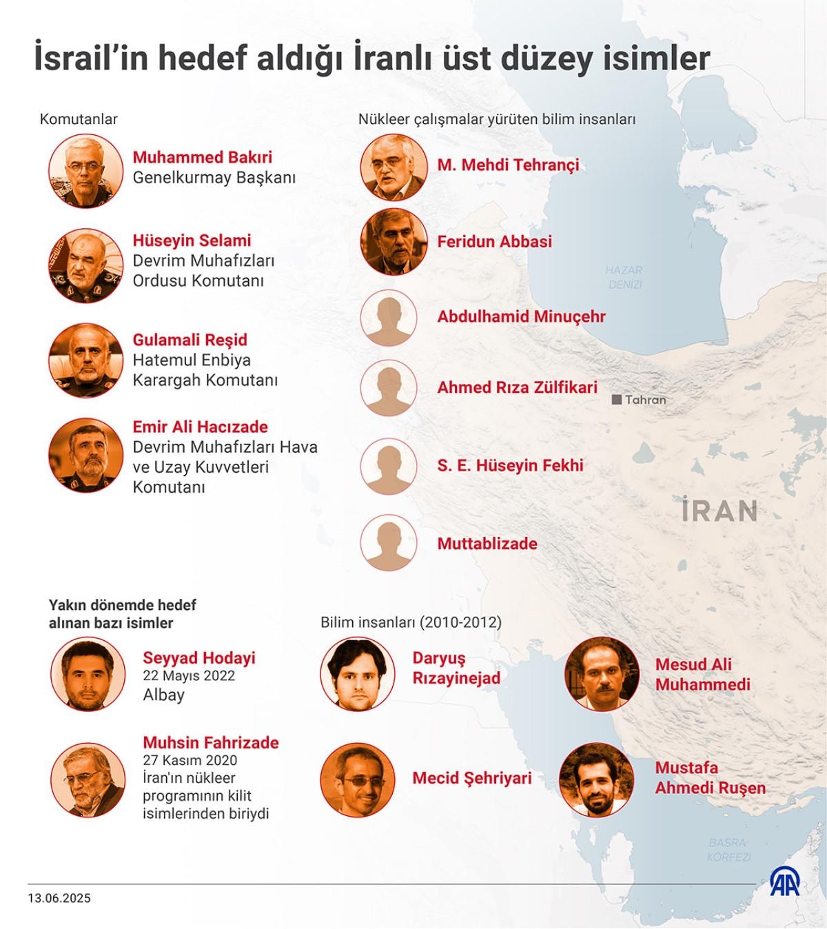 İran, saldırıda İran Genelkurmay Başkanı Tümgeneral Muhammed Bakıri, Devrim Muhafızları Genel Komutanı Tümgeneral Hüseyin Selami dahil üst düzey askeri yetkililer hayatını kaybetti.