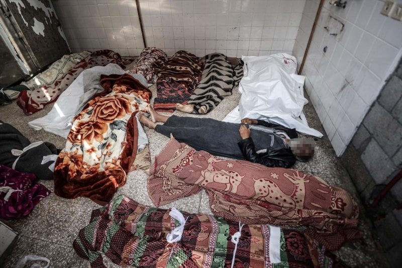 Saldırıda hayatını kaybedenlerin cenazeleri, Deir al-Balah kentindeki Aksa Hastanesi'ne getirildi.