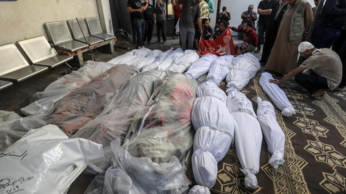 Kimliği belirlenemeyen cesetlerin oluşturduğu bu acı tablo, İsrail'in saldırıları ve baskınlarıyla hizmet dışı kalan ancak kısmi onarımın ardından yüzde 25'lik bir kapasiteyle yeniden hizmet vermeye başlayan Gazze'nin kuzeyindeki Şifa Hastanesi morgunda gözler önüne serildi.