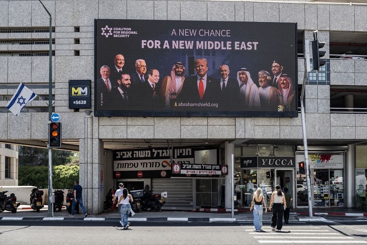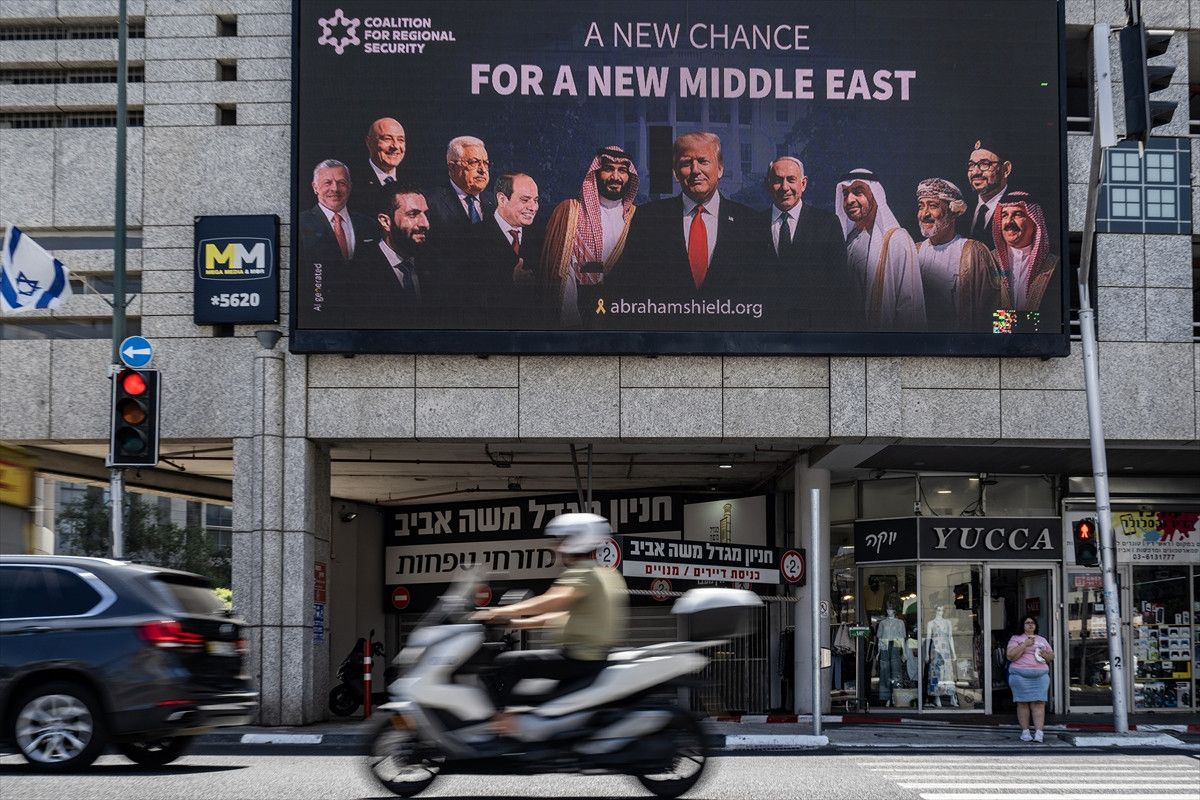 İsrail ile diplomatik ilişkisi bulunmayan Suudi Arabistan, Suriye, Umman ve Lübnan liderlerini ABD Başkanı Donald Trump ve İsrail Başbakanı Binyamin Netanyahu ile yan yana gösteren büyük bir afiş, Tel Aviv'in merkezi bir noktasında reklam panosuna yerleştirildi.