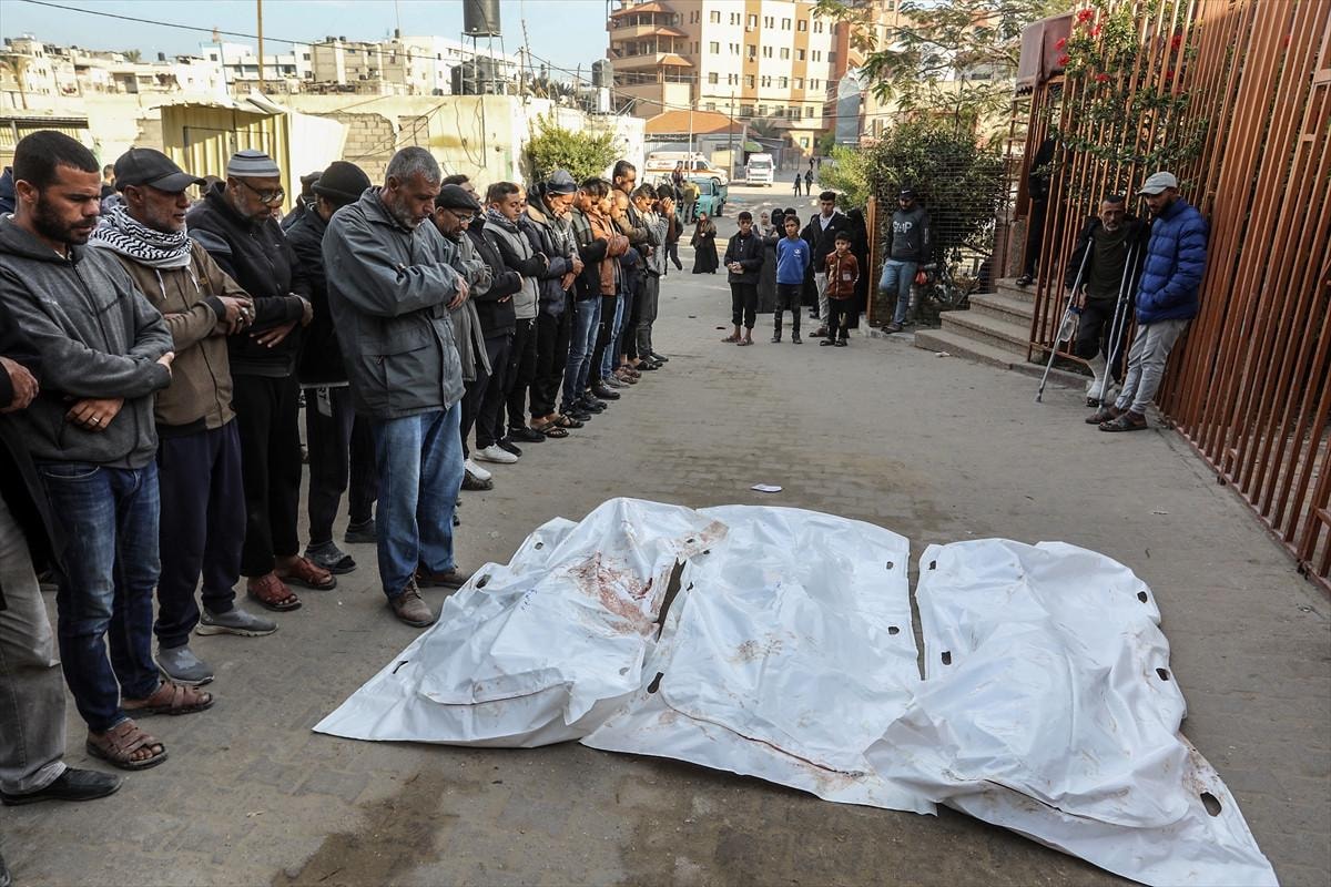 Saldırıda hayatını kaybedenlerin naaşları, Han Yunus kentindeki Nasır Hastanesi'ne getirildi.