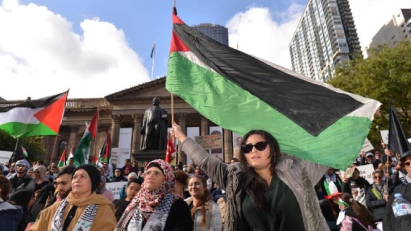 Melbourne kent merkezindeki Eyalet Kütüphanesi önünde toplanan binlerce kişi, İsrail saldırılarının acilen durdurulmasını ve Avustralya hükümetinin İsrail'e yaptırım uygulamasını talep etti.