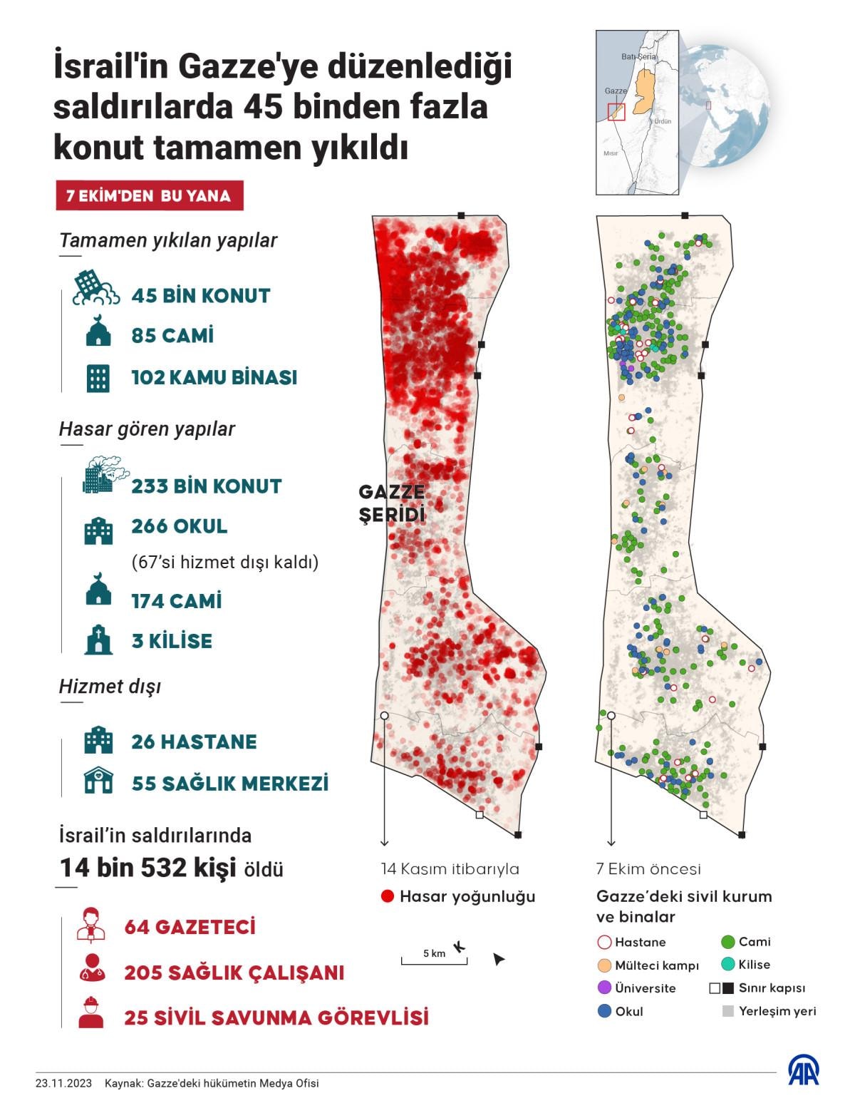 Tam 49 gündür devam eden savaşta, İsrail'in insanlık dramına yol açan saldırıları sonucu can kaybında bilanço ağırlaşıyor.