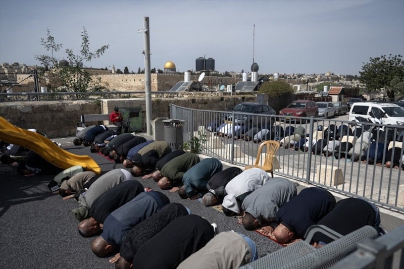 Müslümanlar, Aksa'nın ibadete kapatılması üzerine mübarek ayın son cuması namazını sokaklarda kılmak zorunda kaldı.
