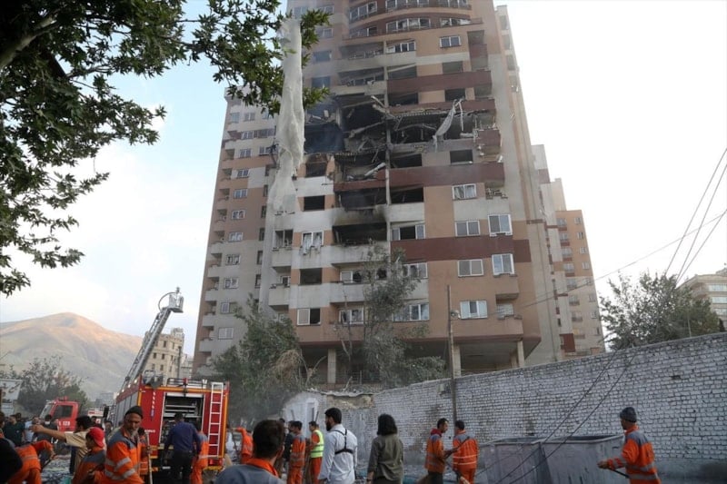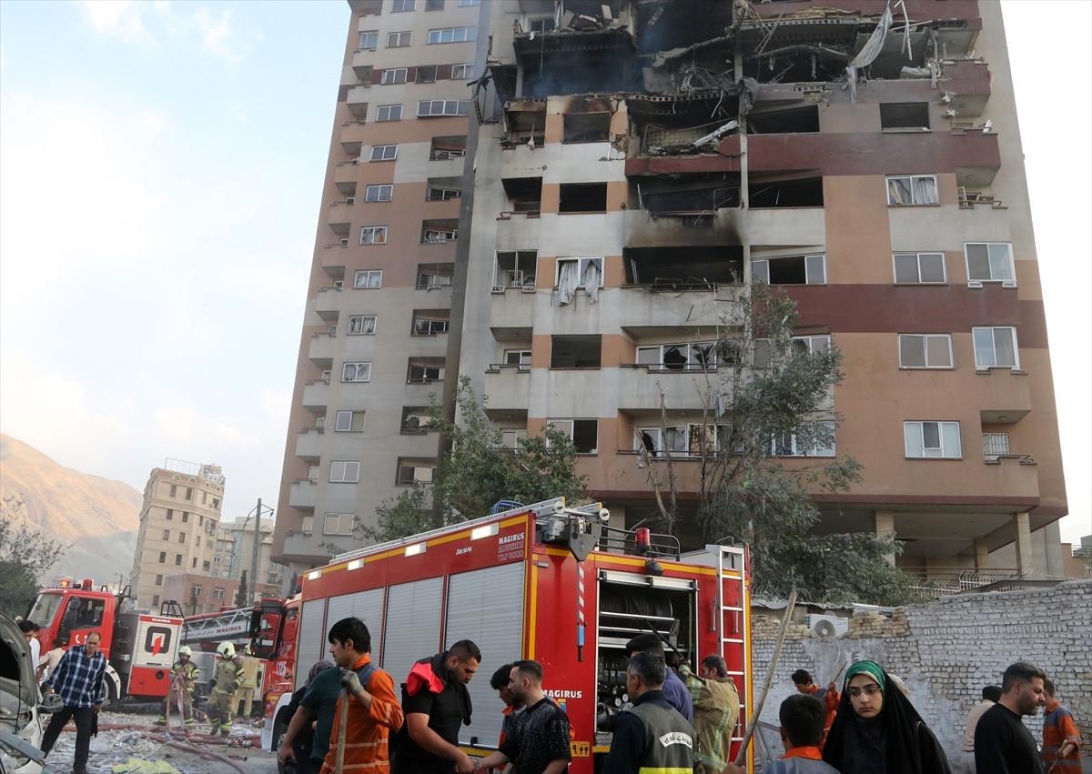 İsrail’in saldırısında İran’ın başkenti Tahran’daki bir apartmanda çok sayıda dairenin ve apartmanın cephesinin zarar gördüğü kameralara yansıdı.