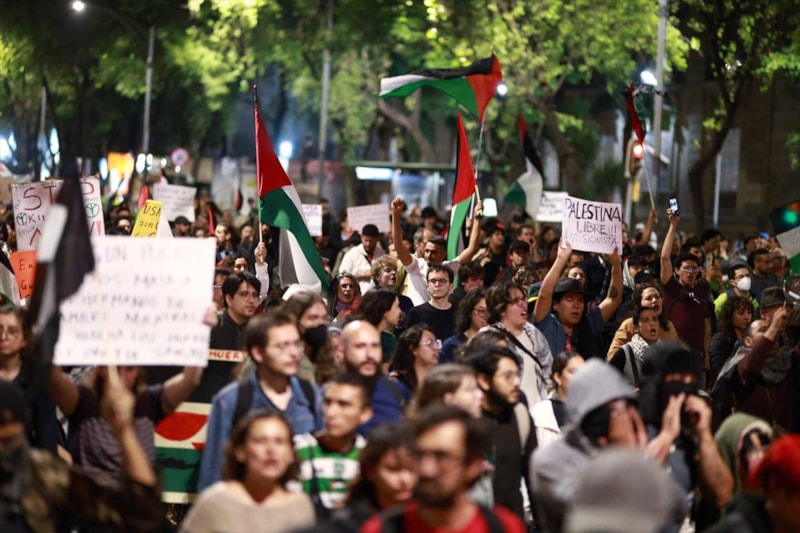 Meksika'nın başkenti Meksiko'da, İsrail donanmasının Global Sumud Filosu’na yönelik saldırısı, düzenlenen protesto gösterisiyle kınandı.