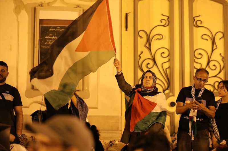 Trablus'taki Cezayir Meydanı'nda toplanan çok sayıda Libyalı, Filistin ve Libya bayrakları taşıyarak İsrail'i protesto eden sloganlar attı.