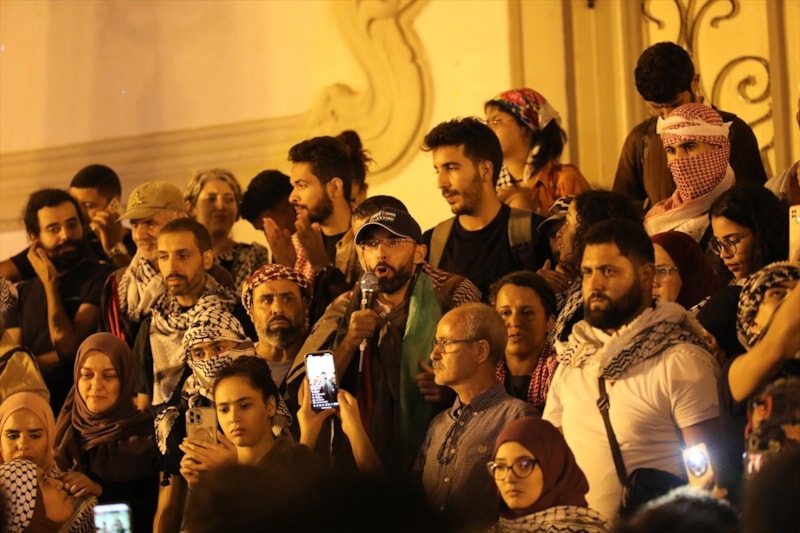 İsrail güçlerinin Küresel Sumud Filosu'na düzenlediği saldırıyı protesto eden göstericiler, İsrail aleyhine sloganlar attı.
