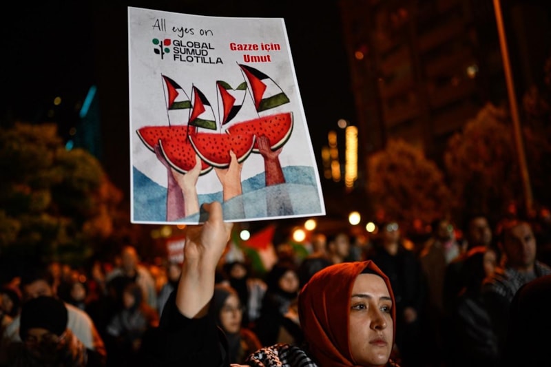 İsrail'in, Gazze'deki ablukayı kırmak ve insani yardım ulaştırmak üzere yol alan Sumud Filosu'nu alıkoyması Türkiye, Yunanistan, Almanya, KKTC, İtalya, Libya ve daha birçok noktada protesto edildi.