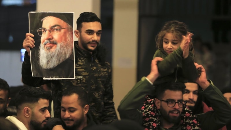 Bazı kişiler, İsrail saldırısında öldürülen Hizbullah lideri Hasan Nasrallah'ın posterlerini taşıdı.