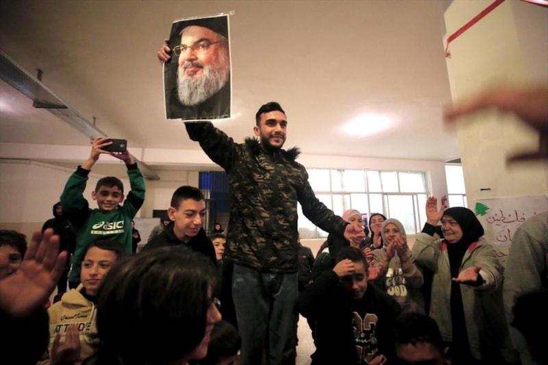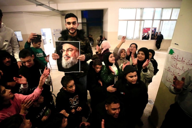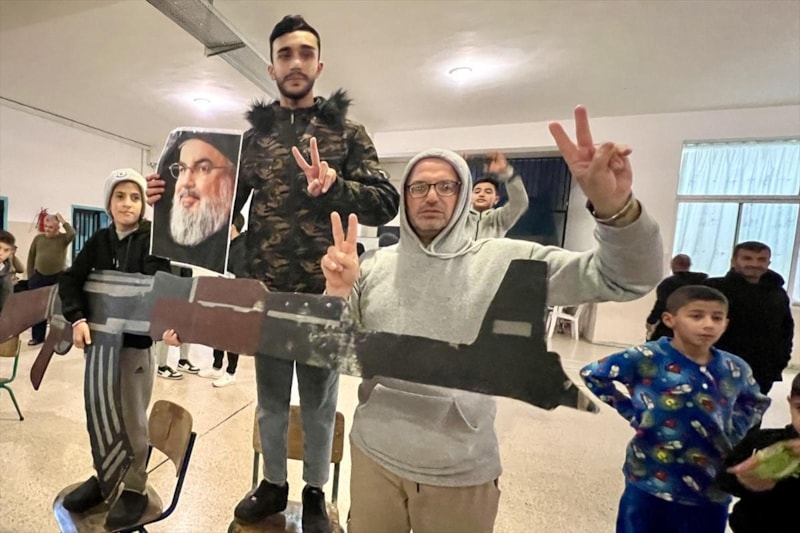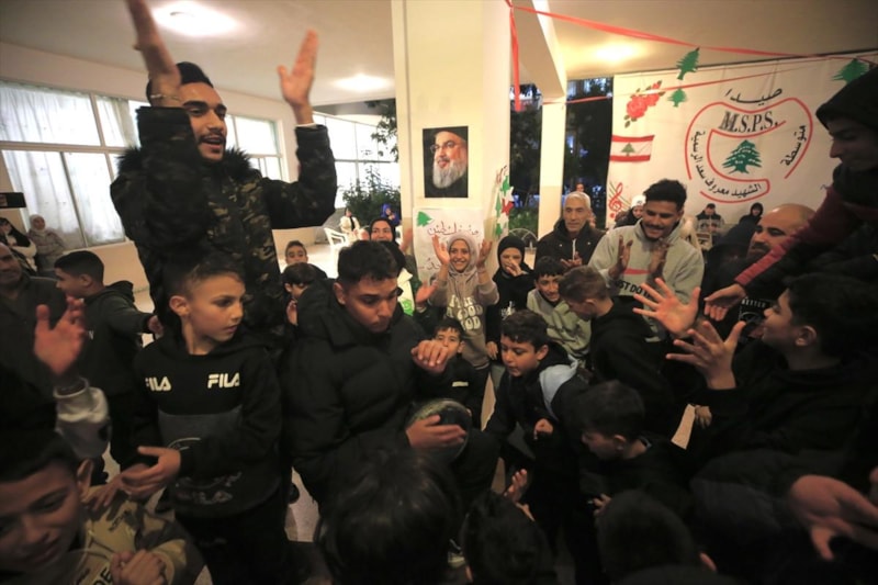 İsrail Başbakanı Binyamin Netanyahu'nun, Lübnan'da Hizbullah ile ateşkese varılmasına onay vermesiyle birlikte, Lübnan'ın Sayda kentindeki bir okul binasına sığınan halk sevinç gösterisinde bulundu.