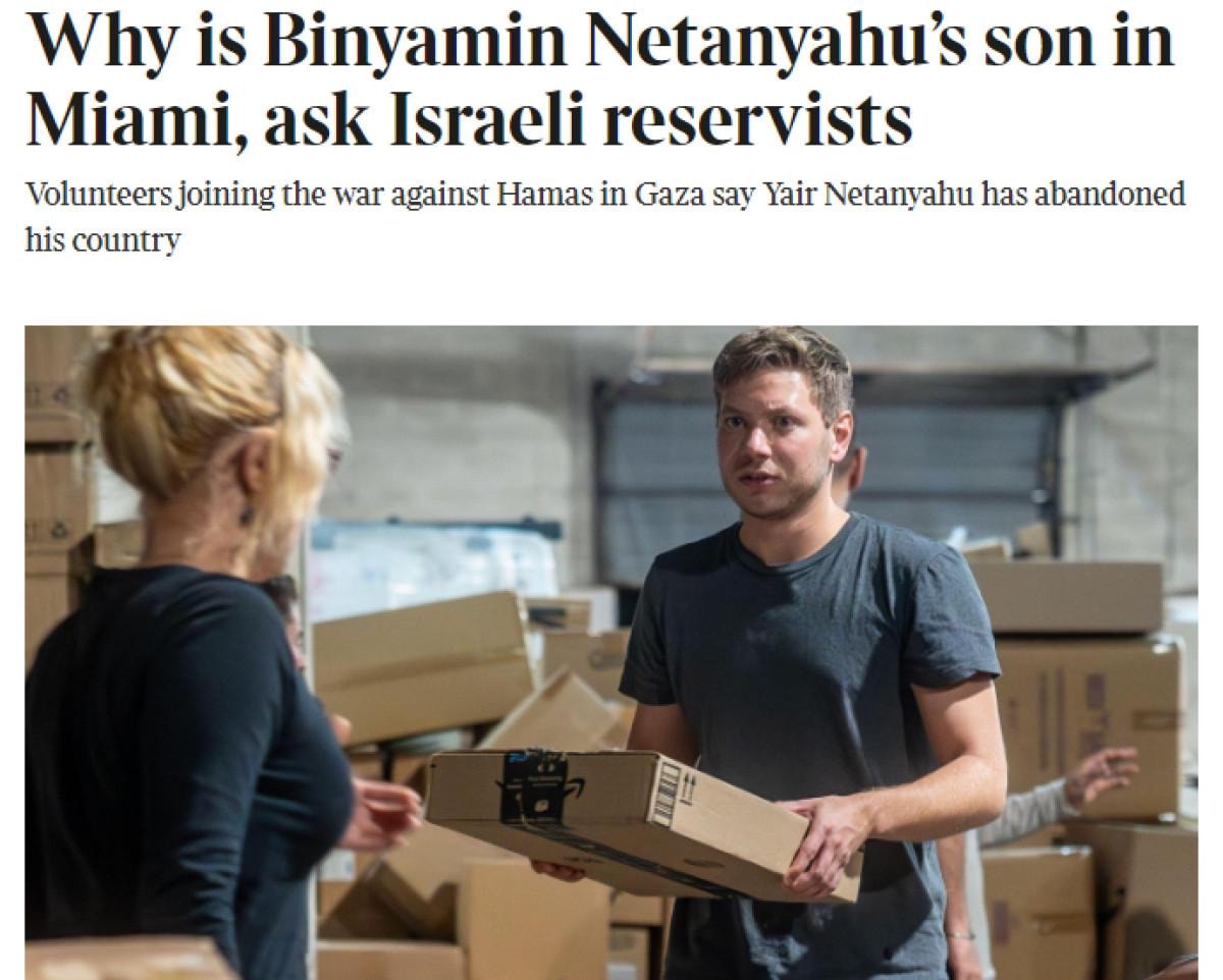 The Times'ın haberine göre, yedek askerler, "Netanyahu'nun oğlu neden Miami'de?" şeklinde sorular soruyor.