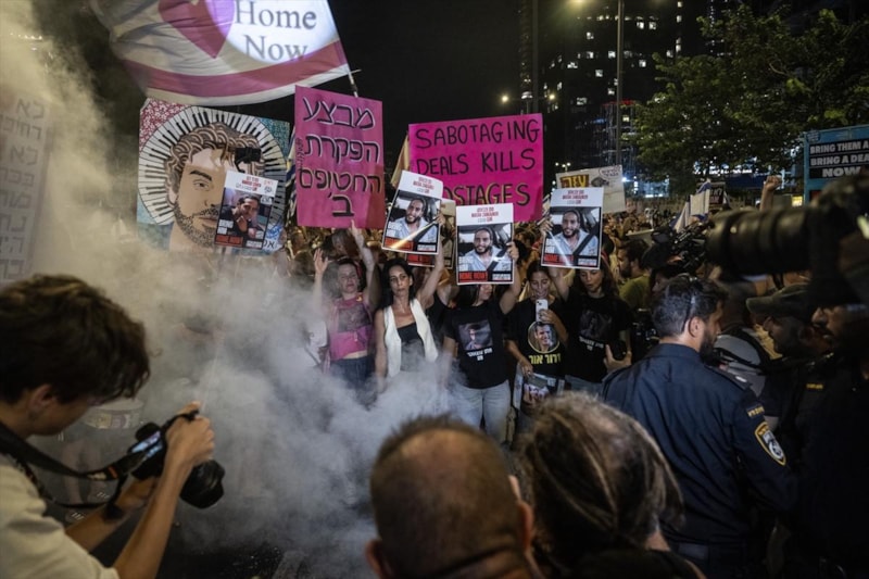 Gazze'de derhal ateşkes ve esir takası anlaşması imzalanması talebinde bulunan göstericilerin, hükümete yönelik protestoları sürüyor.