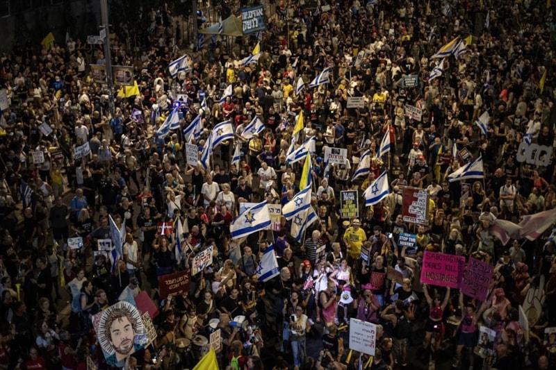 İsrail'de gösteri düzenleyen on binlerce kişi, Başbakan Binyamin Netanyahu liderliğindeki hükümetin Gazze kentini işgal kararını protesto etti, derhal ateşkes ve esir takası anlaşması imzalanması talebinde bulundu.