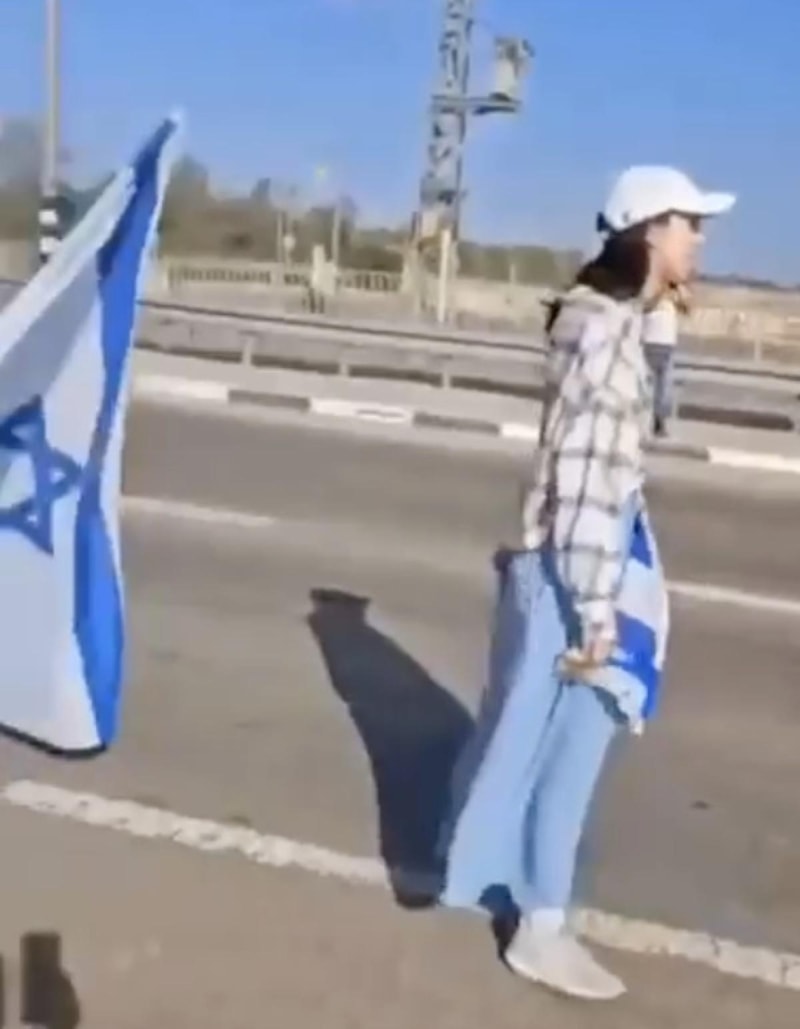 Paylaşımda yer alan görüntüde, bir grup aşırı sağcı İsraillinin, Gazze'ye gönderilen yardım tırlarının önünün kestiği görüldü.