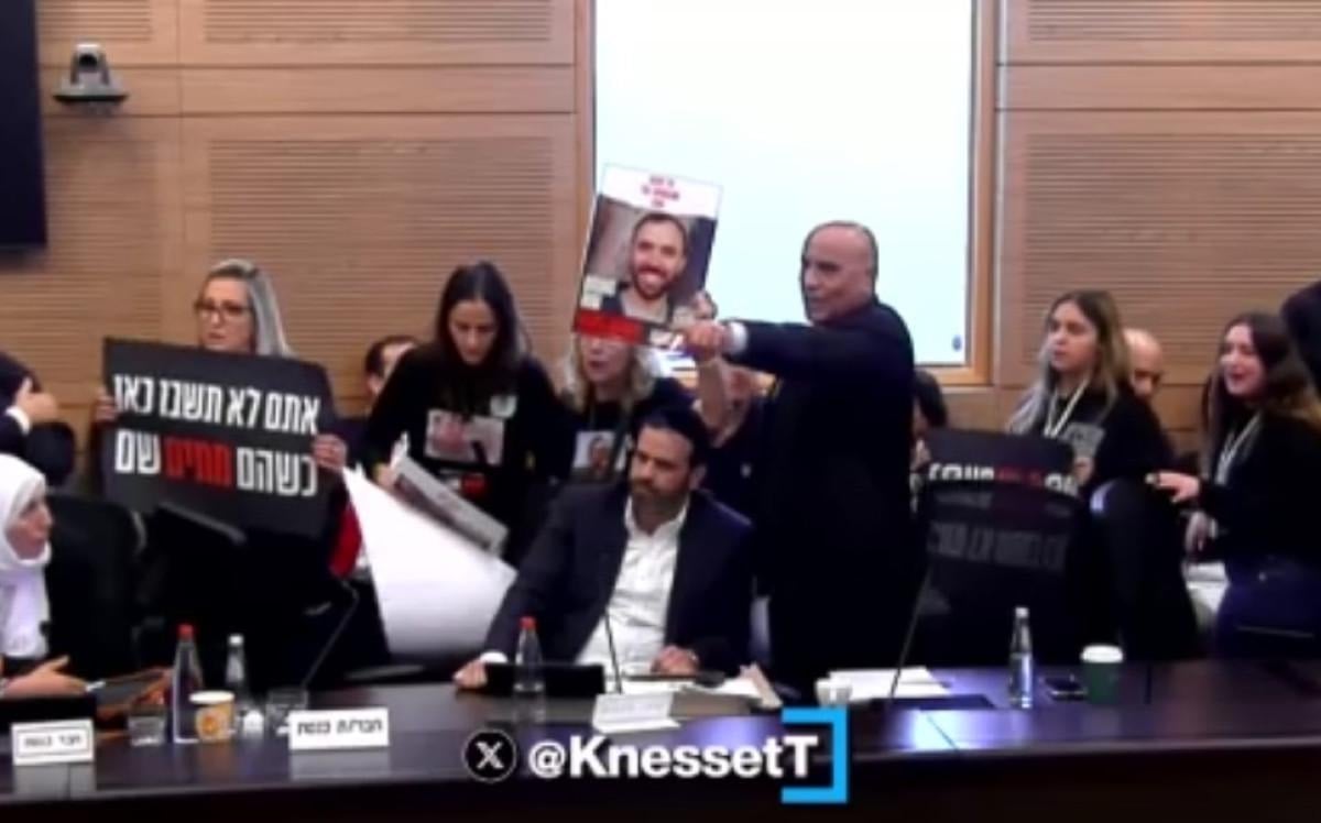 Esir yakınları, İsrail parlamentosu Knesset'te Maliye Komitesi’nin yaptığı toplantıyı bastı.