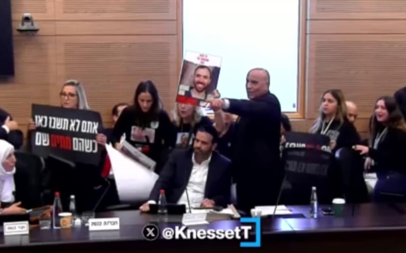 İsrailli esirlerin yakınları, İsrail parlamentosunda Maliye Komitesi toplantısını basarak rehinelerin bir an önce kurtarılmasını istedi.