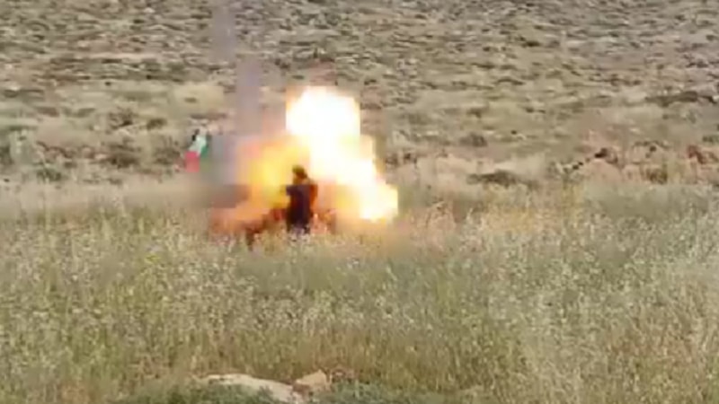 Yol kenarındaki Filistin bayrağını kaldırma girişimi patlamayla sonuçlandı.