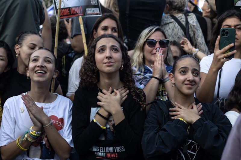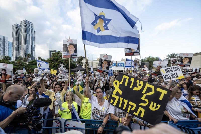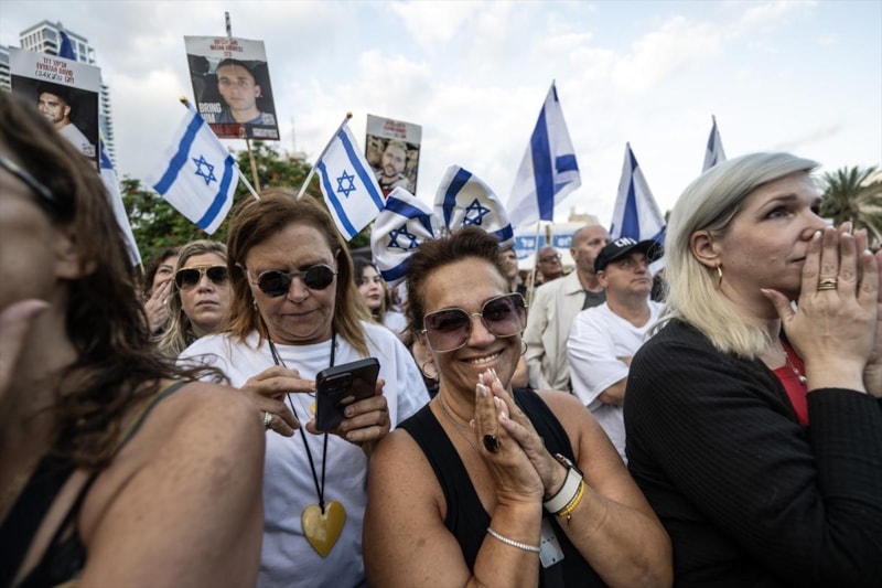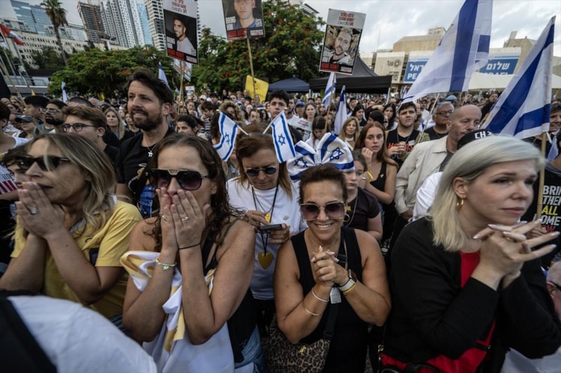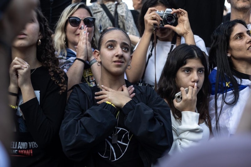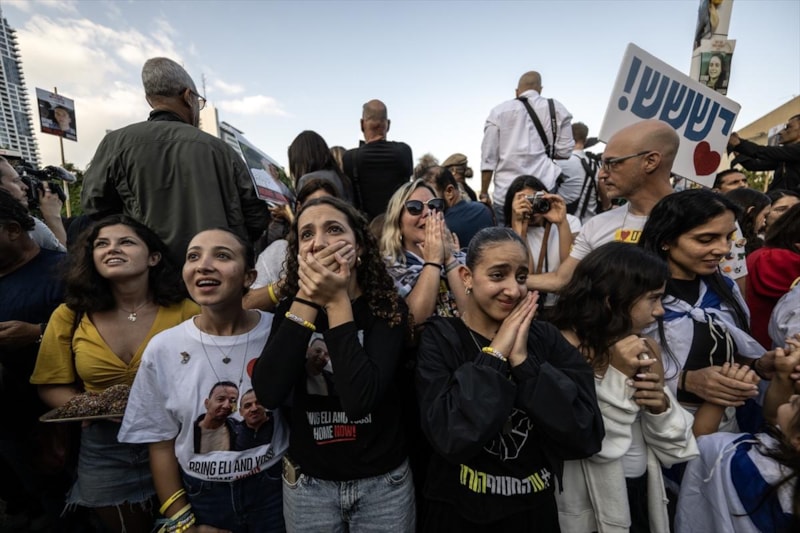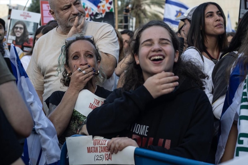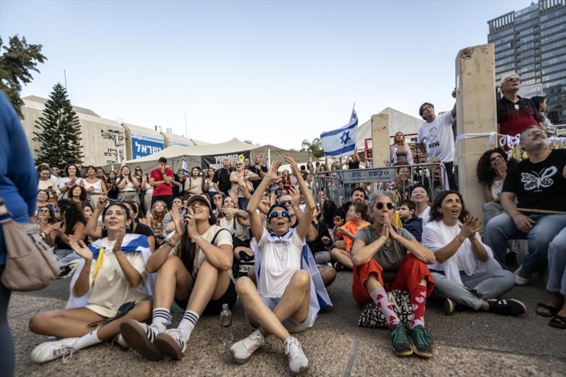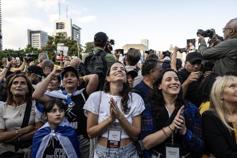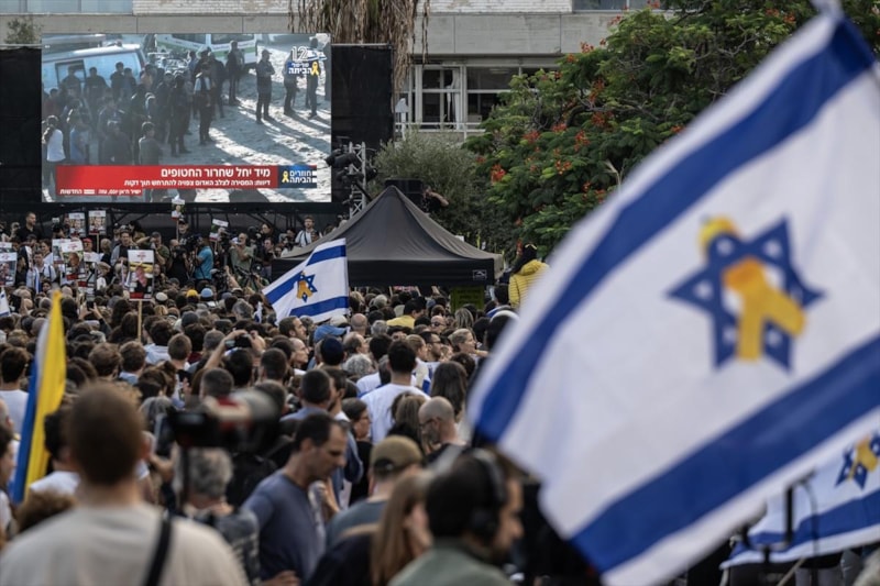 İsrailliler, Gazze'de yürürlüğe giren ateşkes anlaşması sonrası gerçekleşecek esir takasını Tel Aviv'de kurulan ekranlardan takip etti. Takası izlerken bazı İsraillilerin uzun süre ağladığı görüldü.