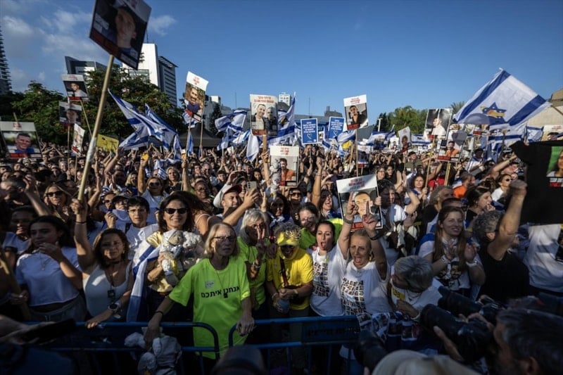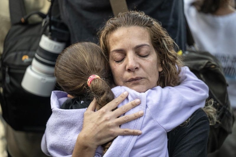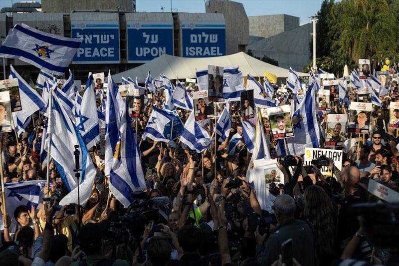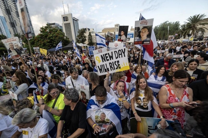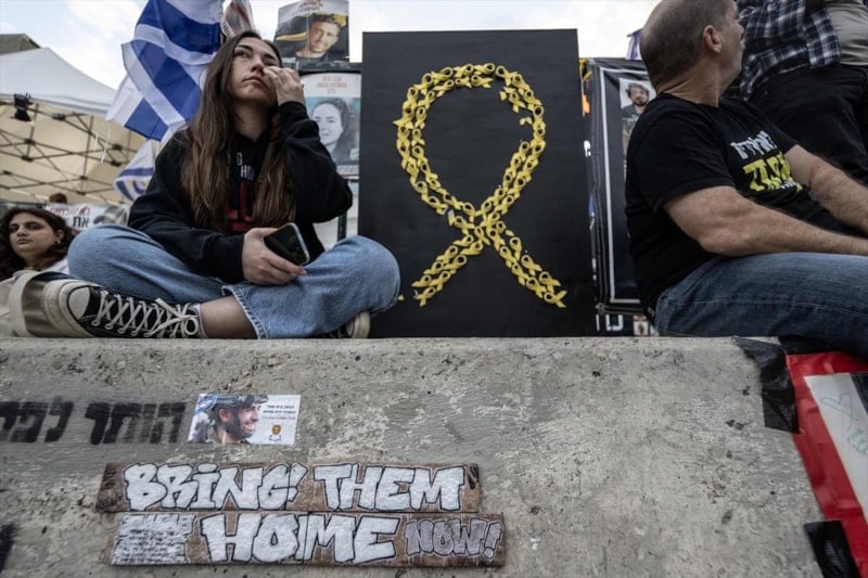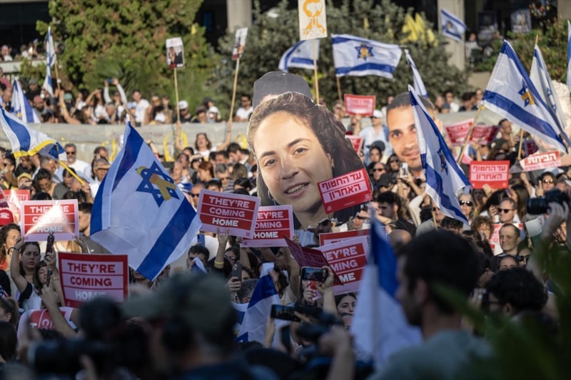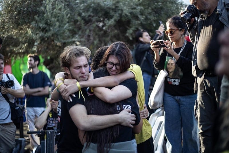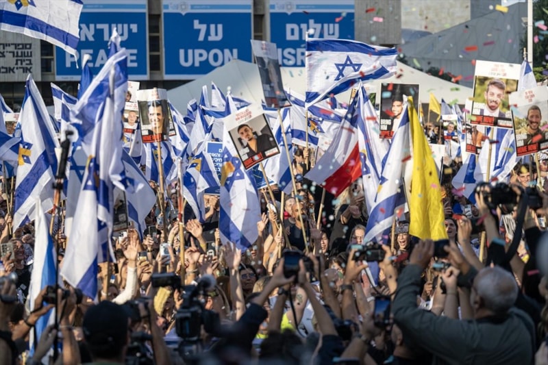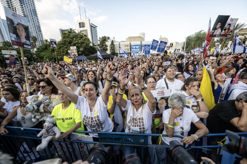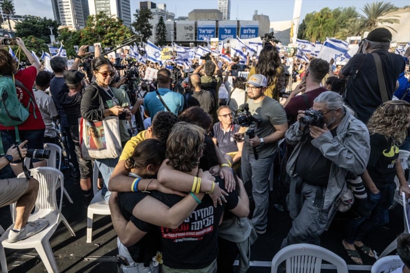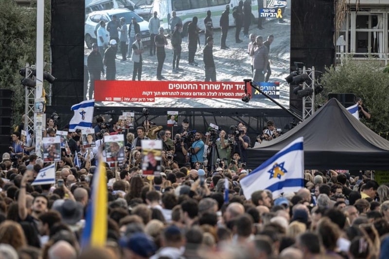 İsrailliler, Gazze'de yürürlüğe giren ateşkes anlaşması sonrası gerçekleşecek esir takasını Tel Aviv'de kurulan ekranlardan takip etti. Takası izlerken bazı İsraillilerin uzun süre ağladığı görüldü.