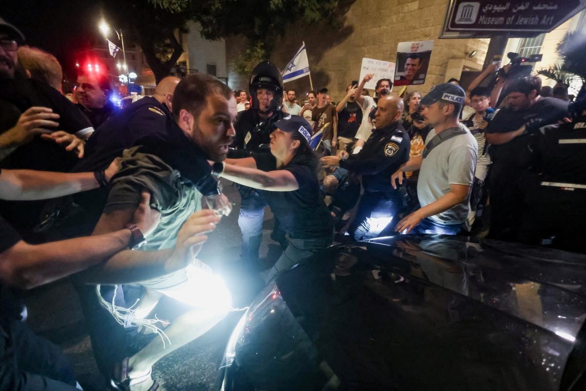 Saldırı sırasında arabanın üzerine çıkarak insanları selamlamaya çalışan Ben-Gvir'e protestocular saldırırken korumalar, son anda makam aracına bindirmeyi başardı.
