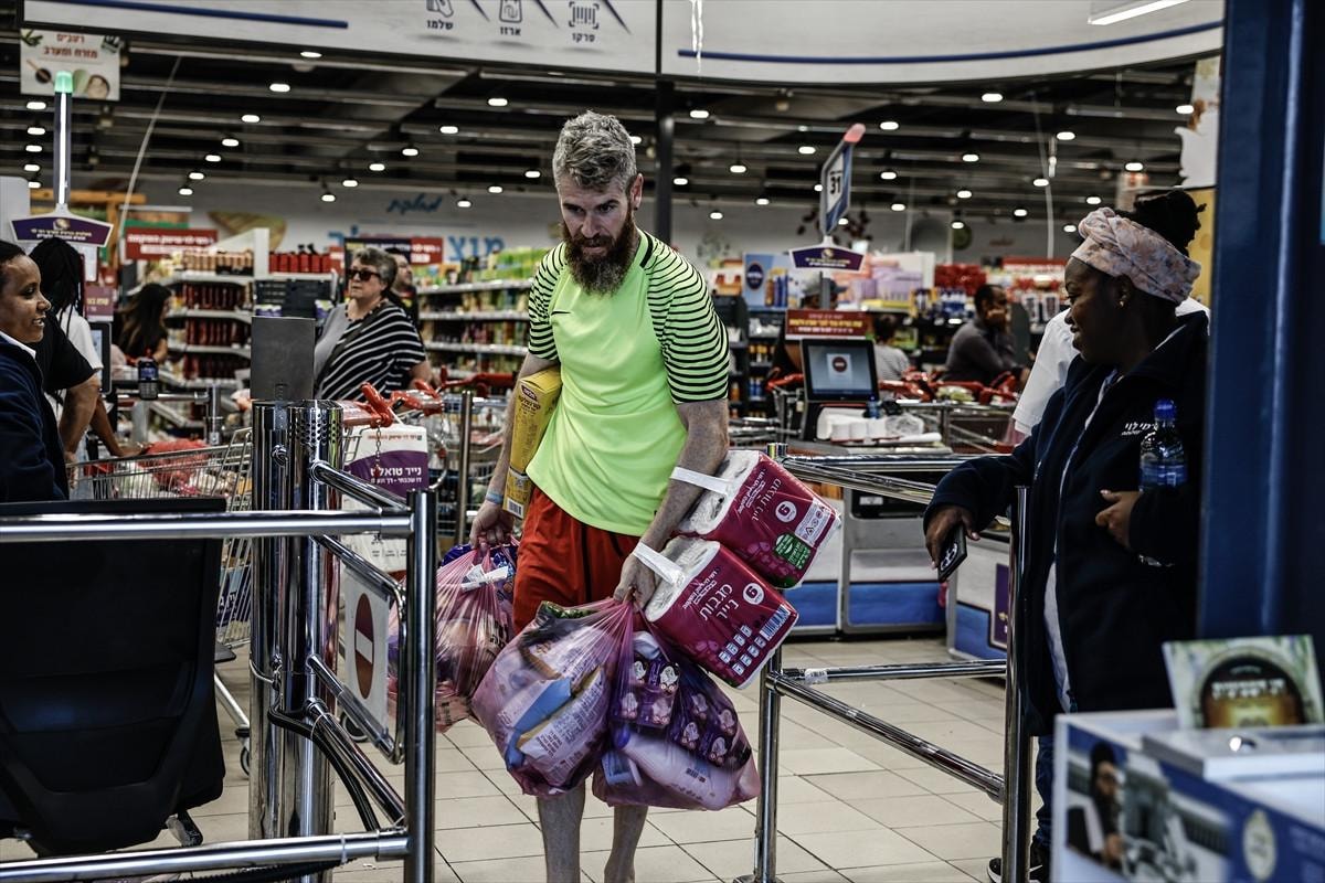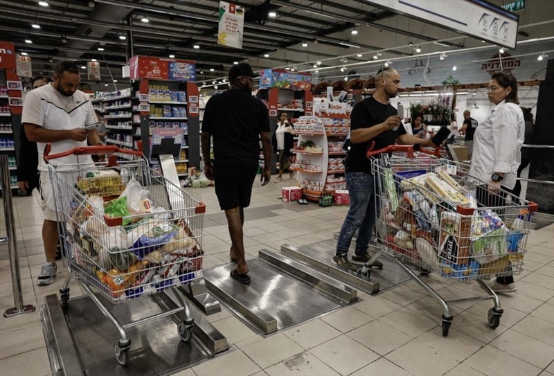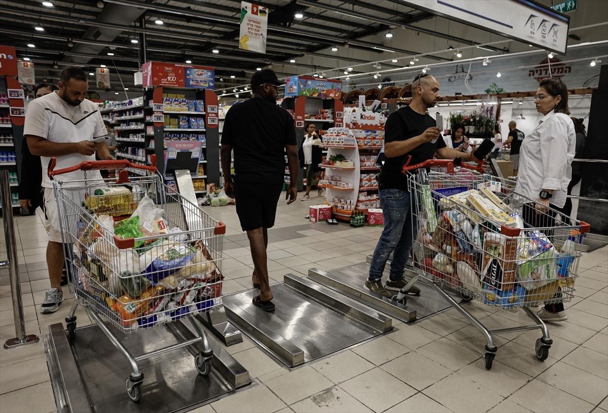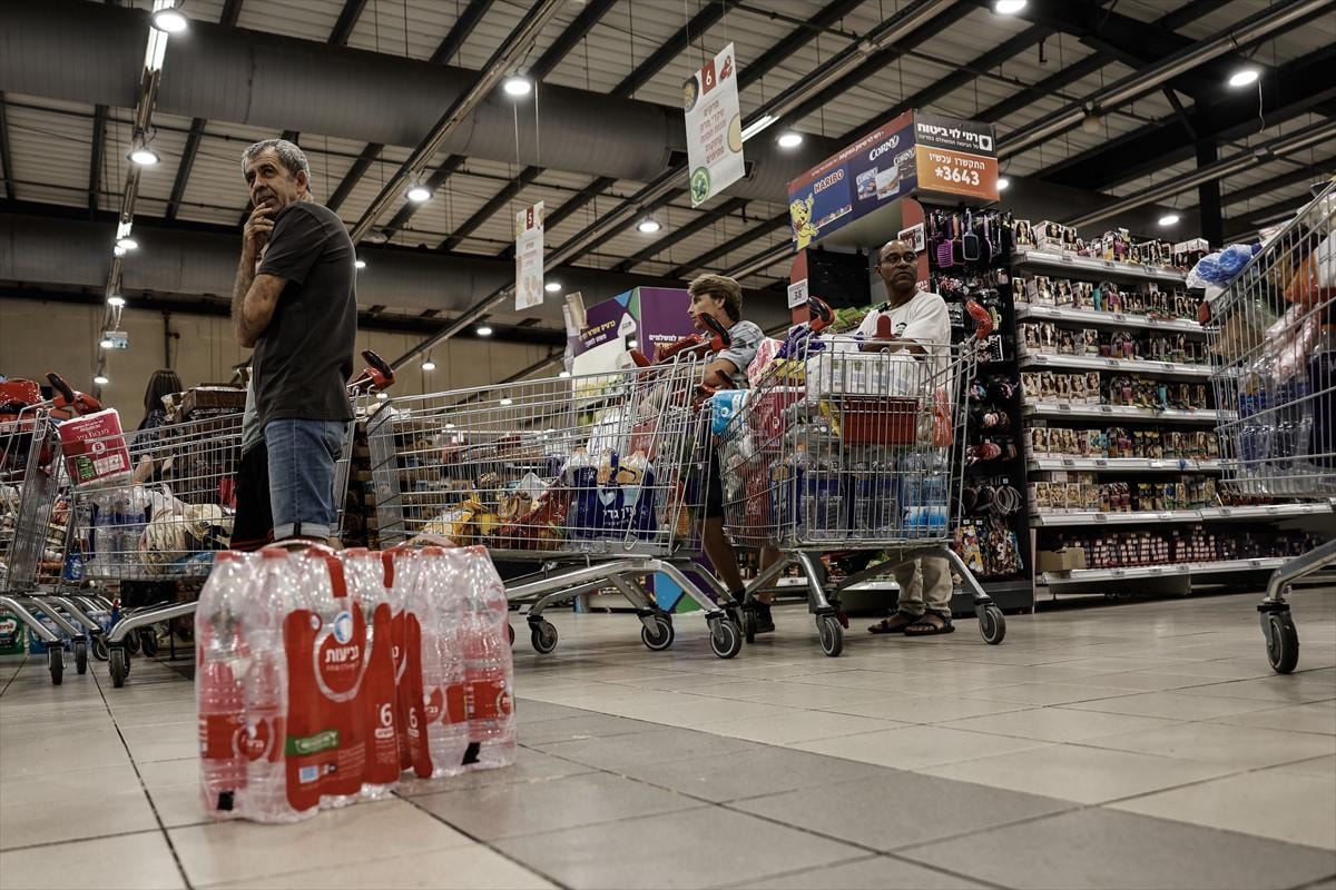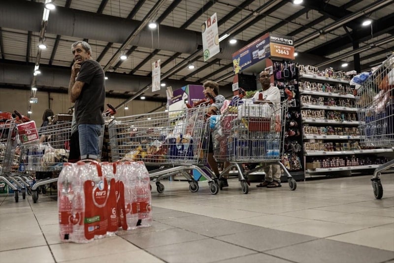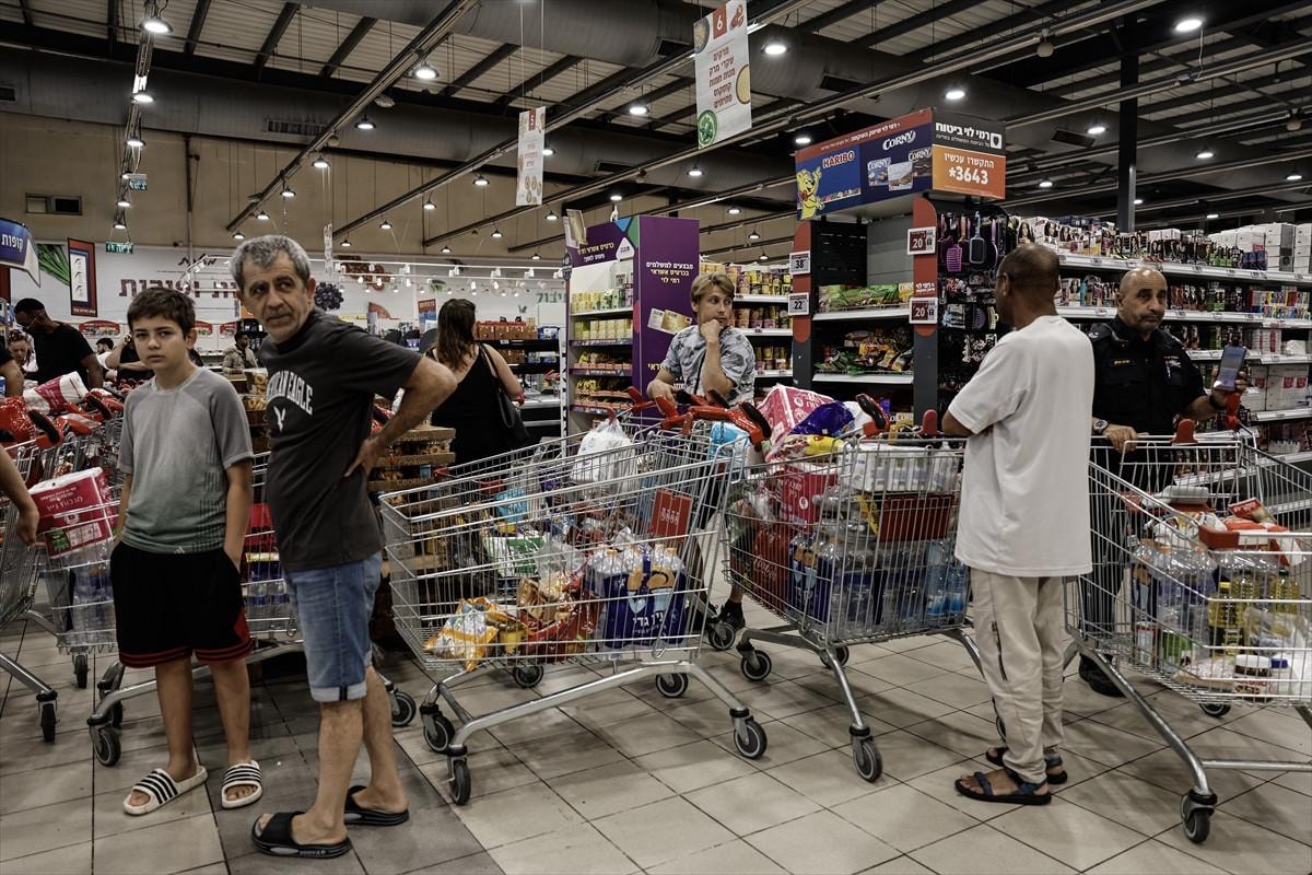 İsrailliler marketlere akın ederek su, konserve, ekmek ve temel ihtiyaç ürünlerini toplu şekilde satın aldı.