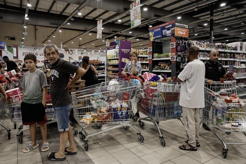 İsrailliler, İran ordusunun misilleme saldırılarından dolayı can korkusuna kapıldı. Binlerce İsrailli Aşkelon kentindeki marketlere akın ederek rafları boşalttı.