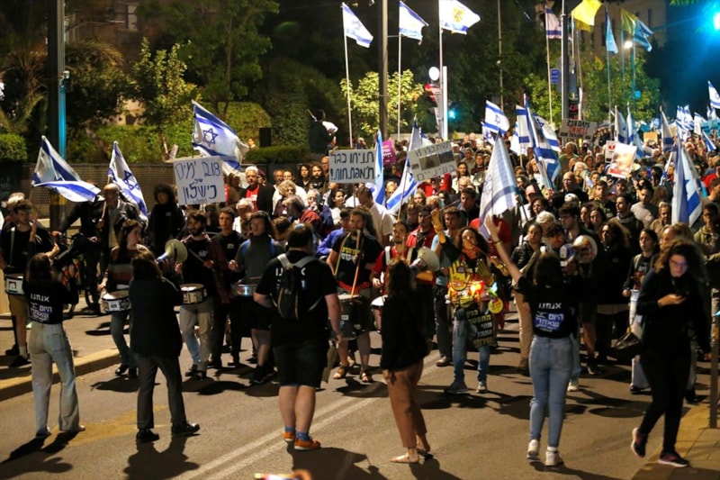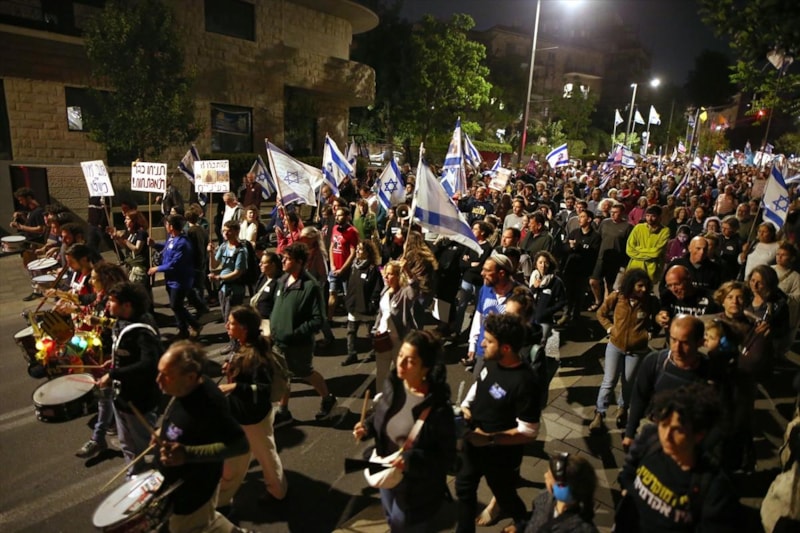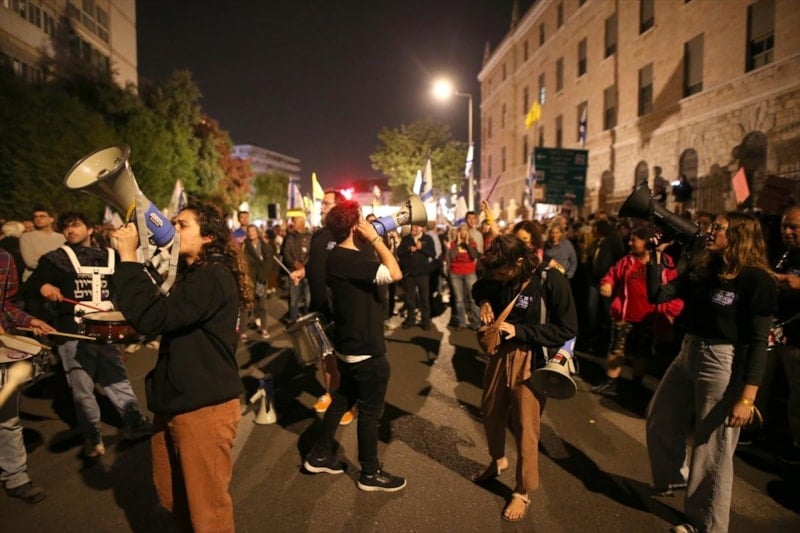 Hükümet karşıtı gruplara katılan on binlerce kişi, Gazze'ye saldırıların sonlandırılmaması ve esirlerin geri getirilmesi konusunda siyasi iradenin kayıtsızlığını eleştirerek, ülke tarihinin "en sağcı hükümetinin" istifasını ve erken seçim talep ettikleri protestolarını yineledi.
