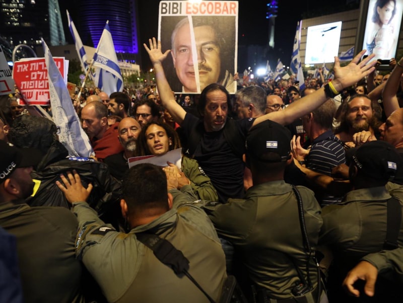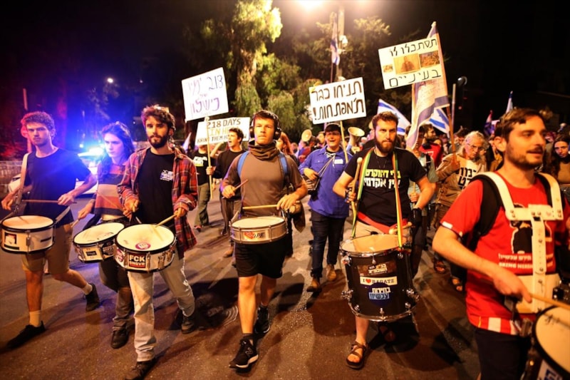 İsrail'de Gazze Şeridi'ndeki İsrailli esirlerin getirilmesi için anlaşma imzalanması çağrısının yapıldığı, İsrail Başbakanı Binyamin Netanyahu'nun hükümetine karşı her hafta cumartesi günü düzenlenen protestolar, bu hafta da geniş katılım ve olaylarla devam etti.