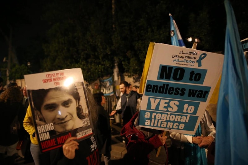 İsrailliler, Gazze Şeridi'nde ateşkes çağrısı, esir takası müzakereleri ve İsrail Başbakanı Binyamin Netanyahu'nun istifası talebiyle protesto gösterileri düzenledi. Göstericiler zaman zaman polisin sert müdahalesine maruz kaldı.