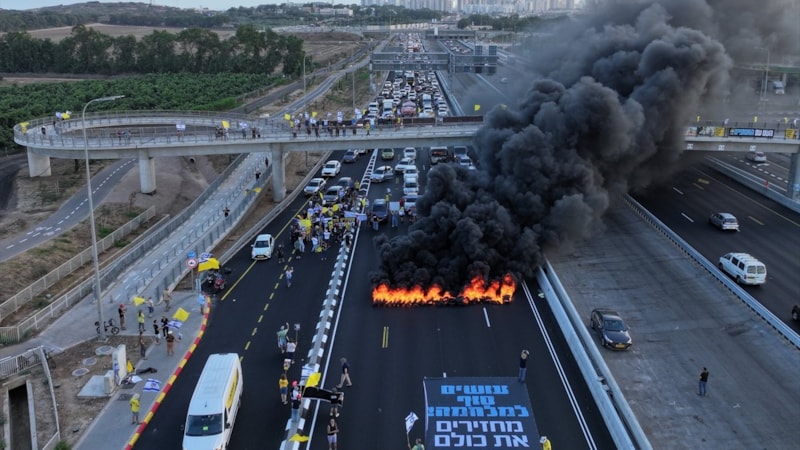 İsrail'in Gazze Şeridi'ni işgal kararı sonrası Tel Aviv'de başlayan gösteriler devam ediyor. Esirlerin geri getirilmesini isteyen İsrailliler, Tel Aviv'deki 4. Cadde'de lastik yakıp, yolu kapattı.