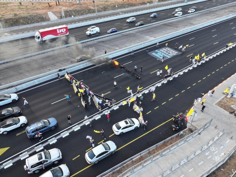 İsrailliler, Tel Aviv’deki bazı ana yolları kapatarak Gazze’de tutulan İsraillilerin geri getirilmesi için protesto gösterisi düzenledi.