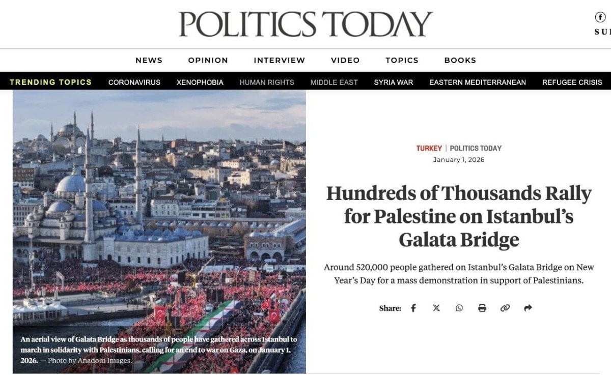 - İstanbul'da Galata Köprüsü'nde düzenlenen Filistin'e destek yürüyüşü dünya medyasında geniş yer buldu.