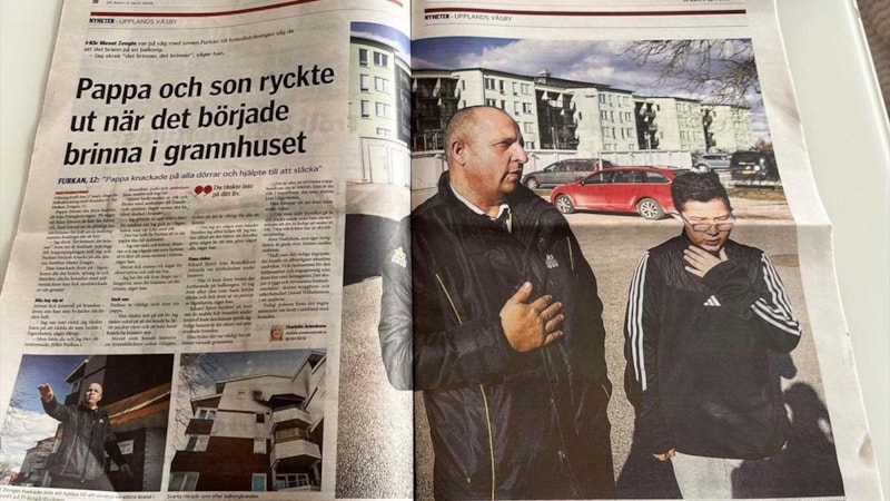 Mitti Upplands Vasby gazetesi, olayı manşetten okurlarına duyururken, İsveç sosyal medyası, baba ile oğlunu 'kahraman' ilan etti.
