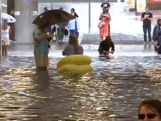 İsveç Uppsala'daki demiryolu köprüsünün altında yer alan metro şiddetli yağış sonrası sular altında kaldı.
