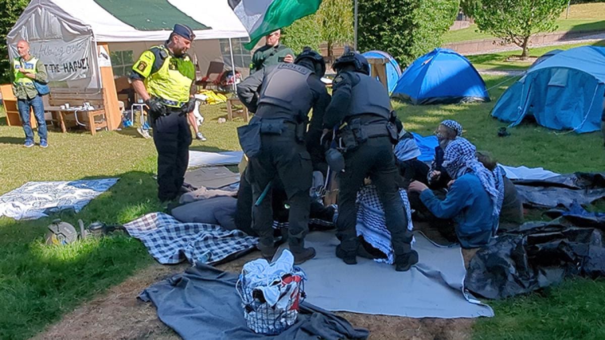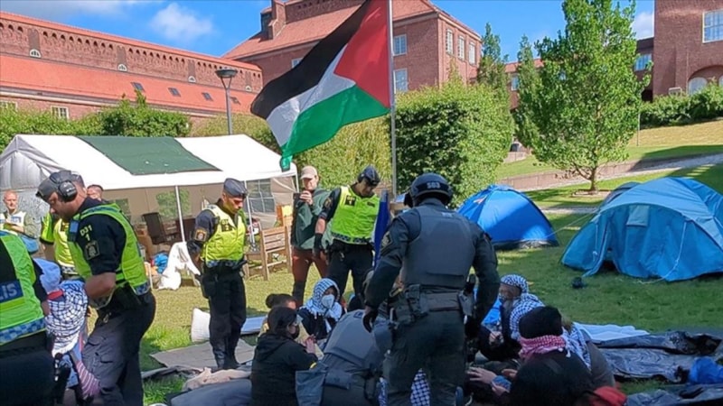 İsveç'in başkenti Stockholm'deki KTH kampüsünde, öğrencilerin çadır kurarak sürdürdüğü barışçıl gösteri, polis tarafından dağıtıldı.