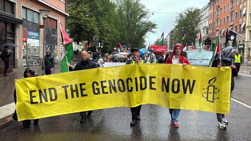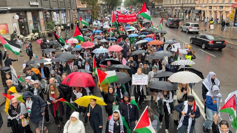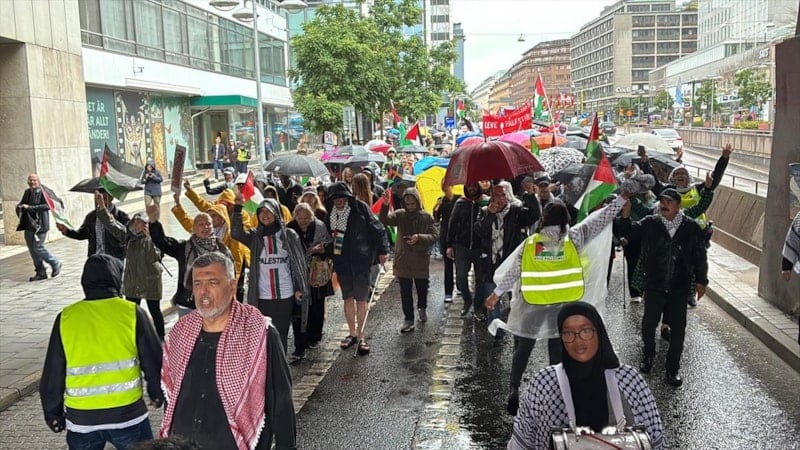 Bu kapsamda, İsveç'in başkenti Stockholm'de yüzlerce kişi, İsrail'in Filistinlilere yönelik gerçekleştirdiği soykırımın durdurulması için protesto yürüyüşü gerçekleştirdi.