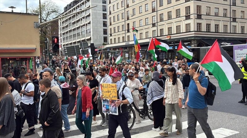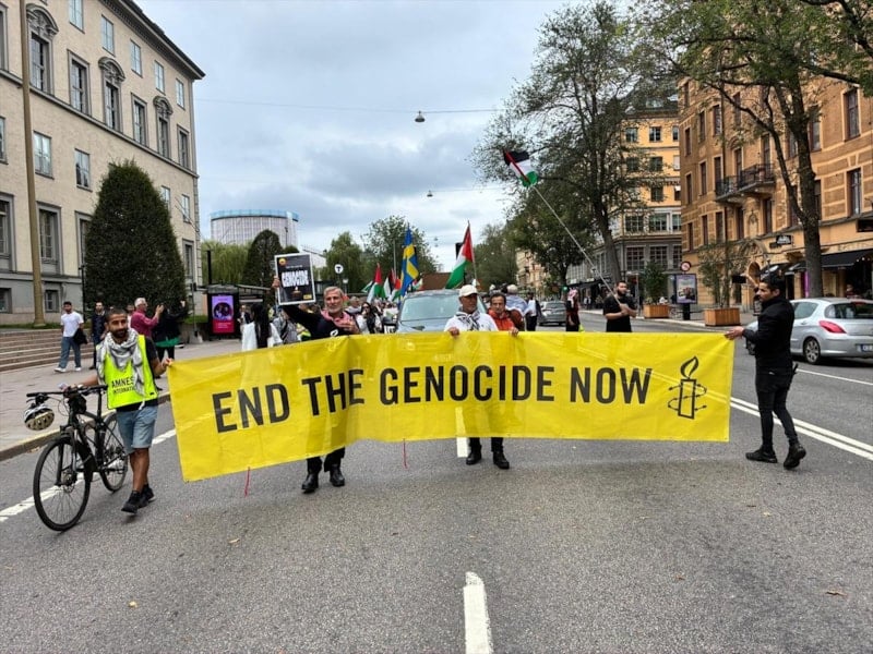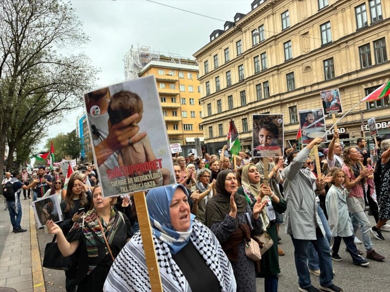 Stockholm'de yüzlerce kişi, İsrail'in Gazze'ye yönelik işgal planını protesto etti. Protestoda, "Gazze'de çocuklar öldürülüyor", "Okullar ve hastaneler bombalanıyor", "Gıda kıtlığına son verilsin" yazılı pankartlar taşındı.
