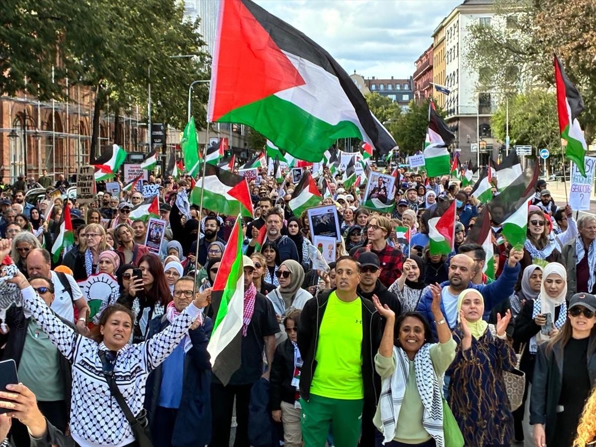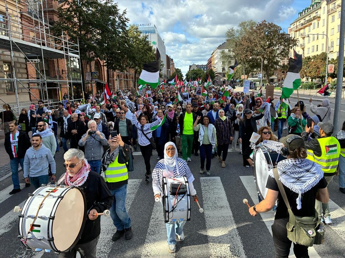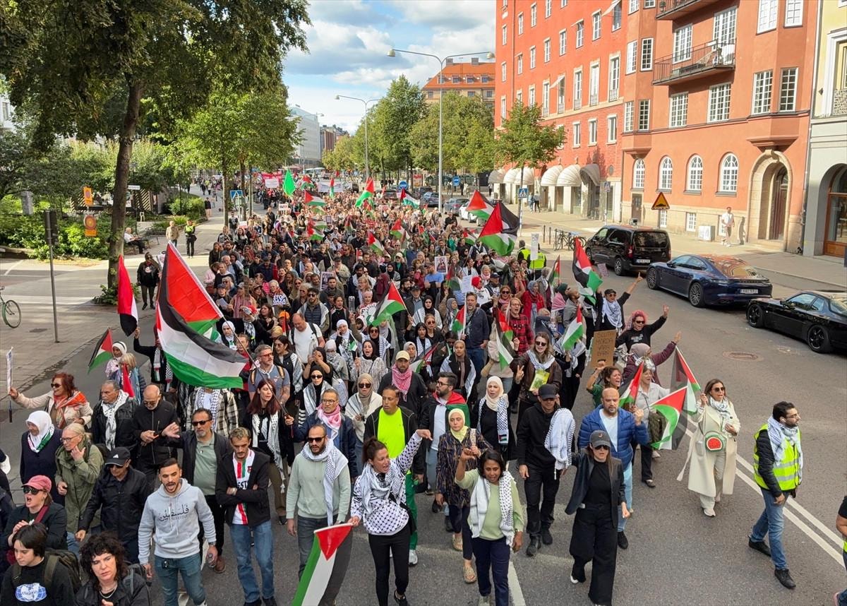 İsrail'in Gazze'ye yönelik saldırıları sürerken İsveç'in başkenti Stockholm'de yüzlerce kişi, İsrail'in Gazze'ye yönelik işgal planını protesto etti.