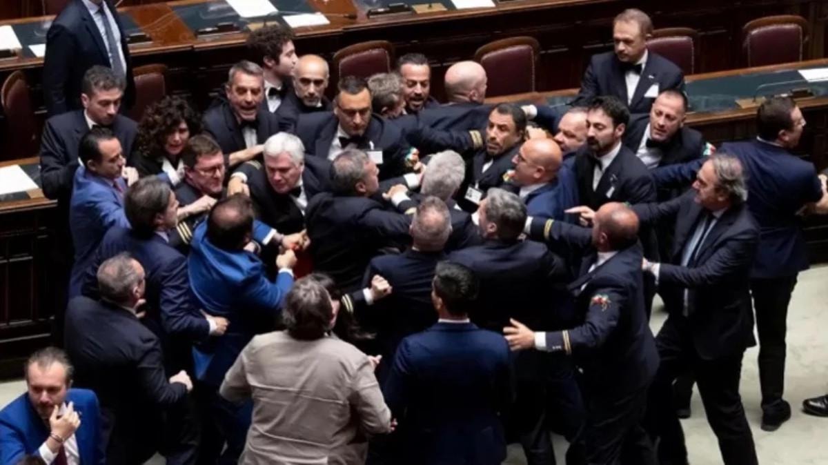 Temsilciler Meclisi Başkanı Lorenzo Fontana'nın, vekillerin kavgasıyla ilgili tüm görüntüleri detaylı incelemek üzere toplattığı ve oturumu yarın sabaha ertelediği kaydedildi.